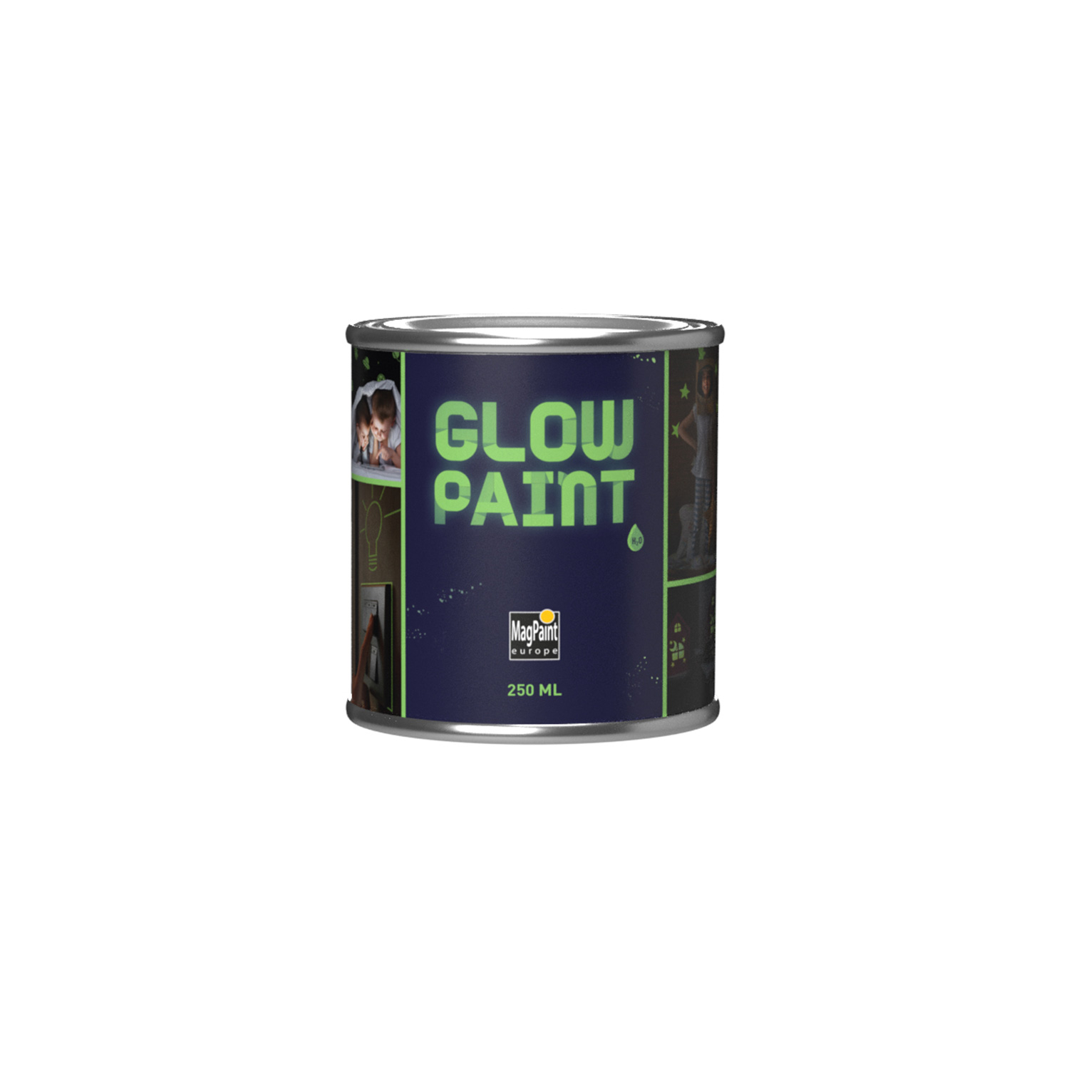 Die MagPaint GlowPaint Leuchtfarbe ist eine transparente Wandfarbe, die Wände und Materialien im Dunkeln in magisch leuchtende Objekte verwandelt.
