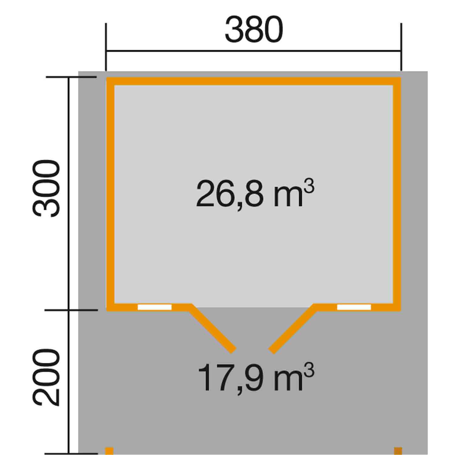 • Sockelmaß in cm: B 380 x T 500