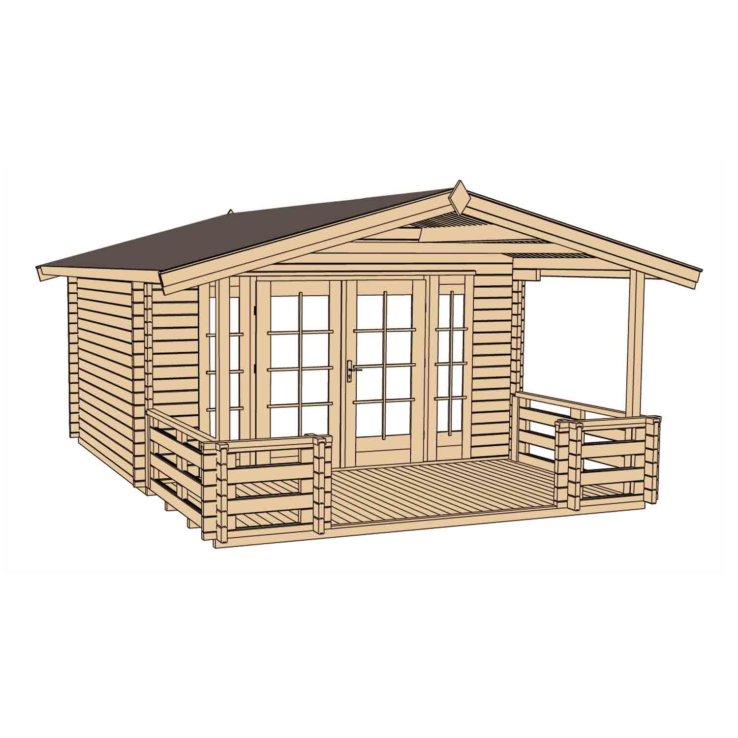 Wandstärke: 45 mm Material: europäische Fichte Dachform: Satteldach Dachstärke: 19 mm inkl. 200 cm langem Vordach und Terrasse inkl. Stützen, Abschlussblende und Querstrebe inkl. 19...