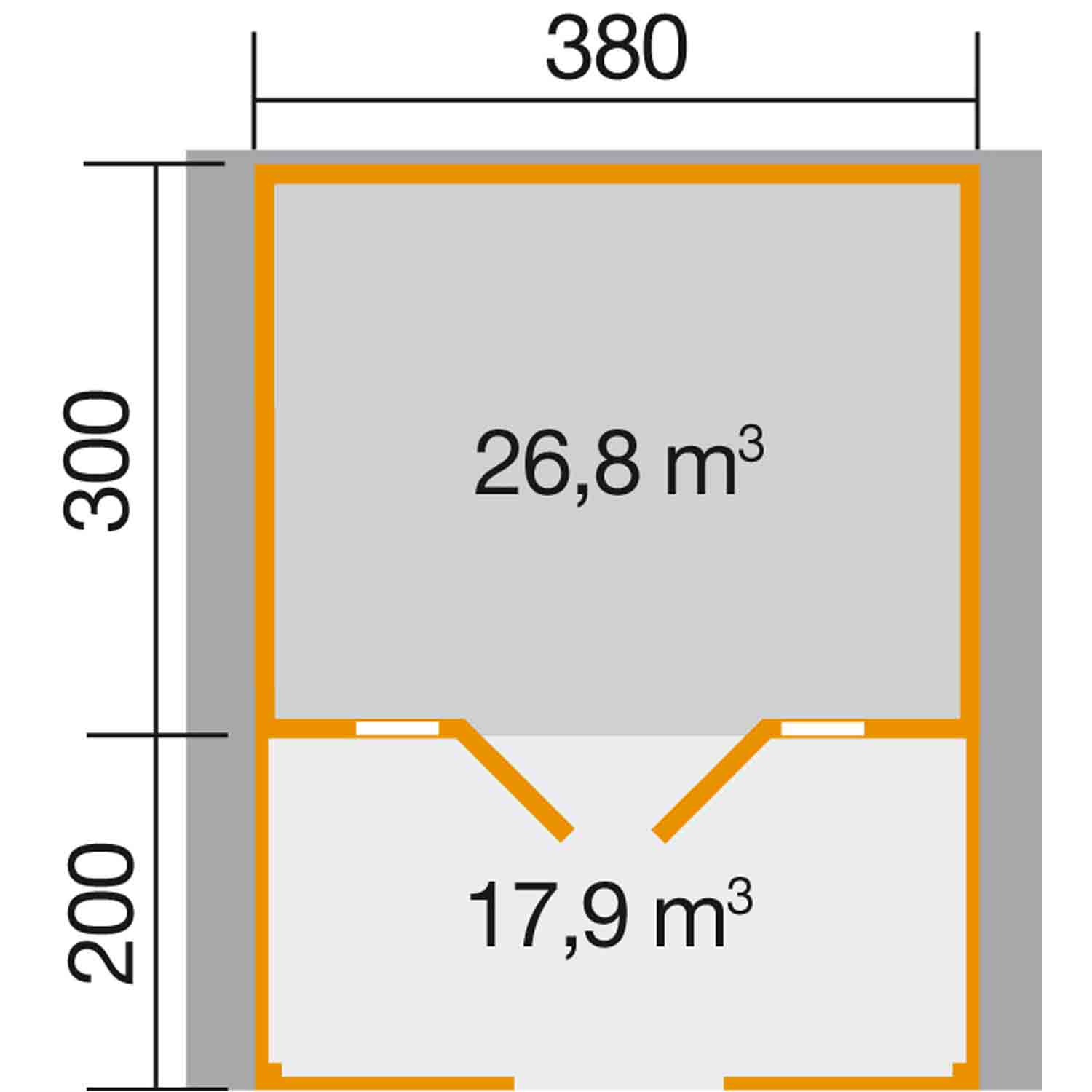 Mit einem Außenmaß von B 460 x T 514 x H 265 bietet es viel Platz für entspannte Stunden im eigenen Garten. Die Nutzfläche des Gartenhauses beträgt 19,00 m².