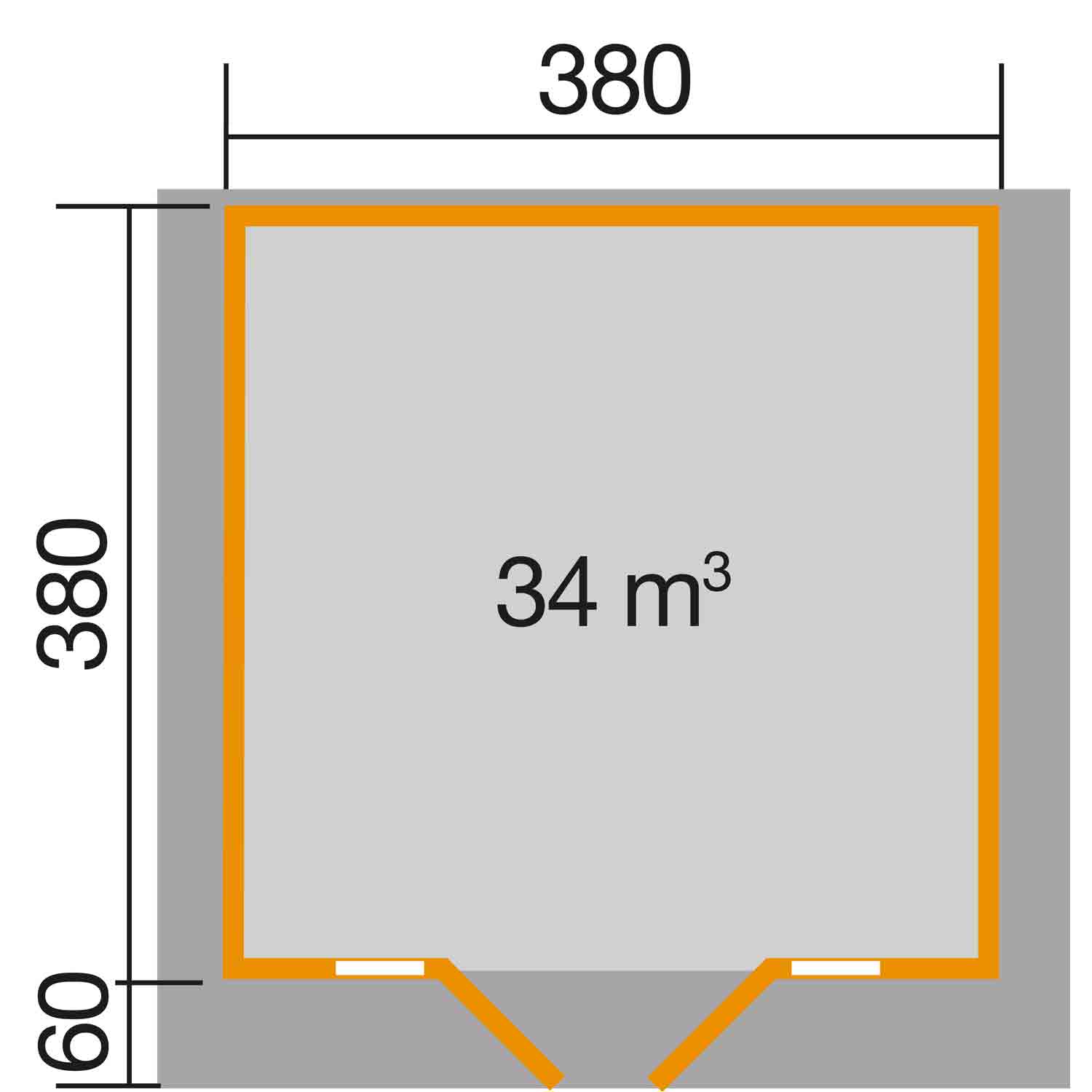 Mit einem Außenmaß von B 460 x T 454 x H 265 bietet es viel Platz für entspannte Stunden im eigenen Garten. Die Nutzfläche des Gartenhauses beträgt 19,00 m².