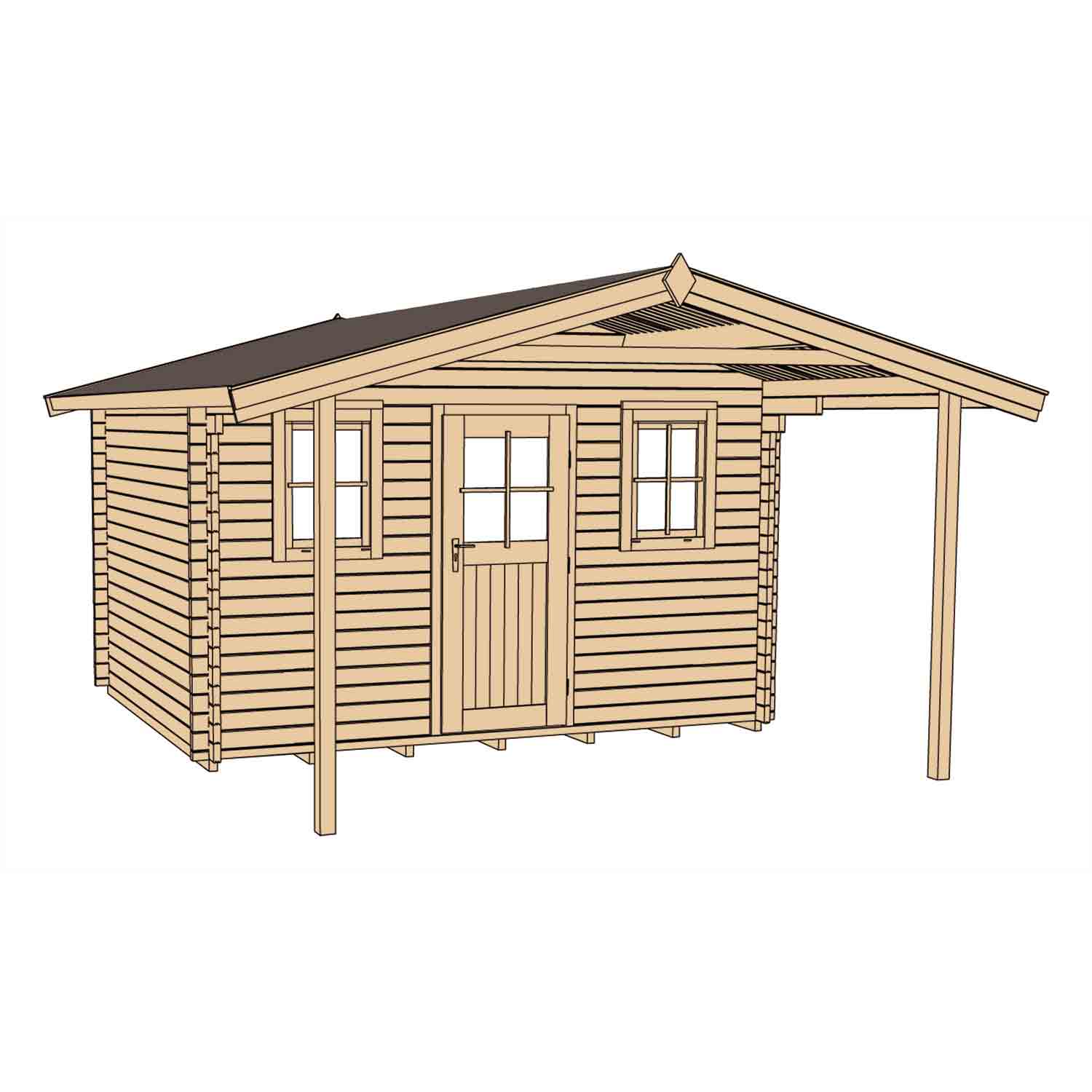 Wandstärke: 45 mm Material: europäische Fichte Dachform: Satteldach Dachstärke: 19 mm inkl. 200 cm langem Vordach inkl. 19 mm starken Massivholzboden inkl. extra hohe Einzeltür und 2...