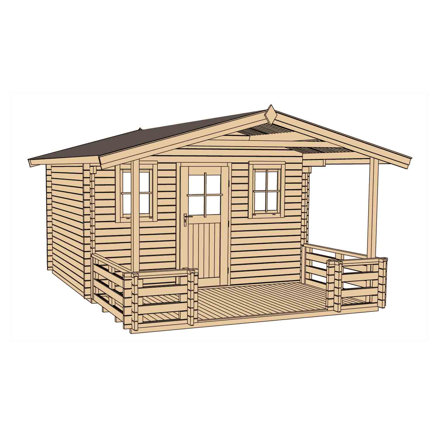 Wandstärke: 45 mm Material: europäische Fichte Dachform: Satteldach Dachstärke: 19 mm inkl. 200 cm langem Vordach und Terrasse inkl. Stützen, Abschlussblende und Querstrebe inkl. 19...