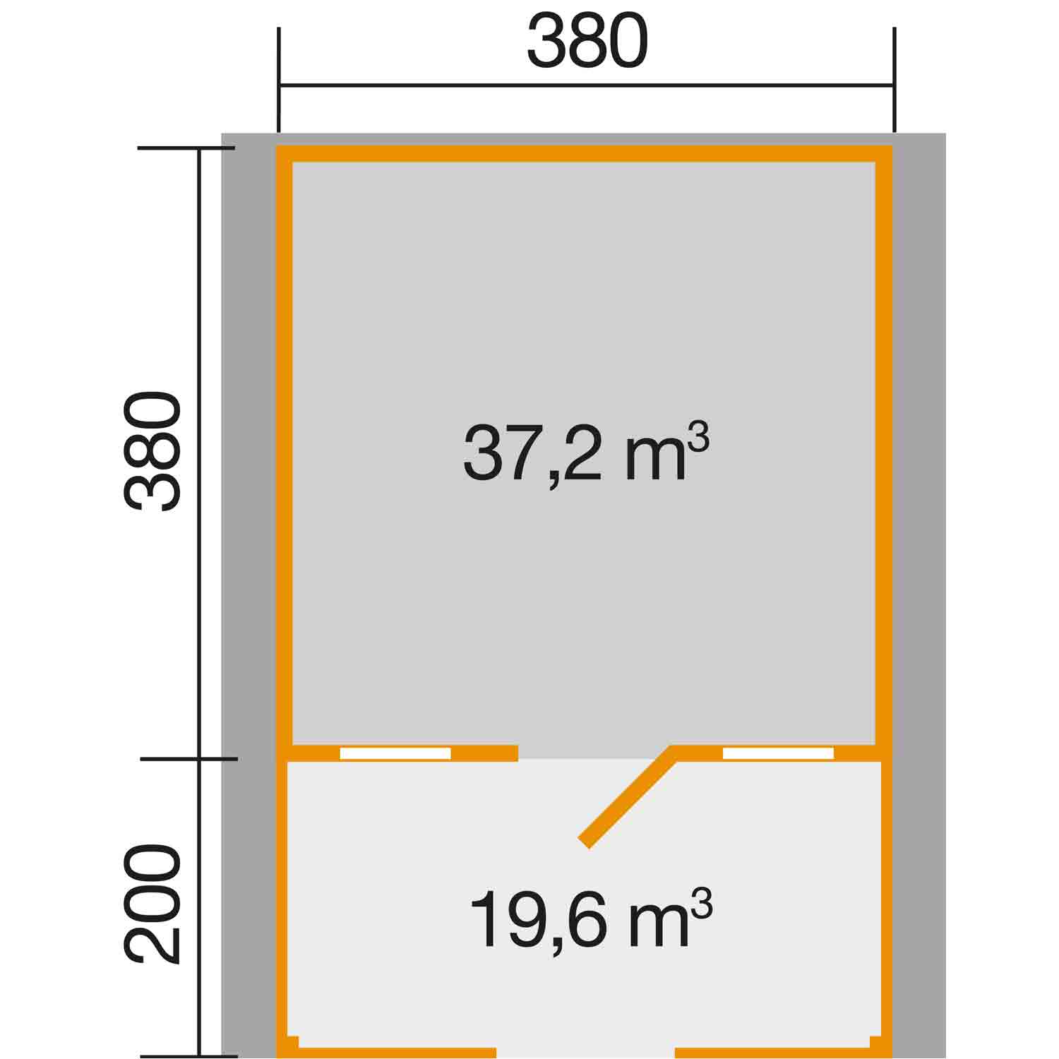 • Sockelmaß in cm: B 380 x T 580