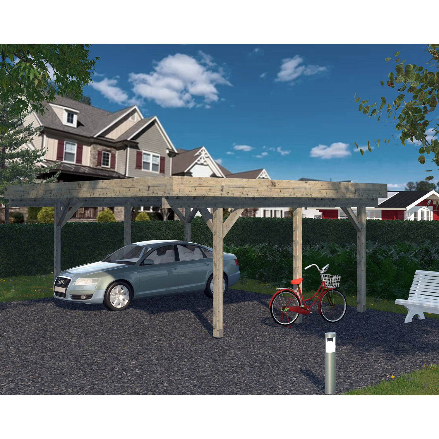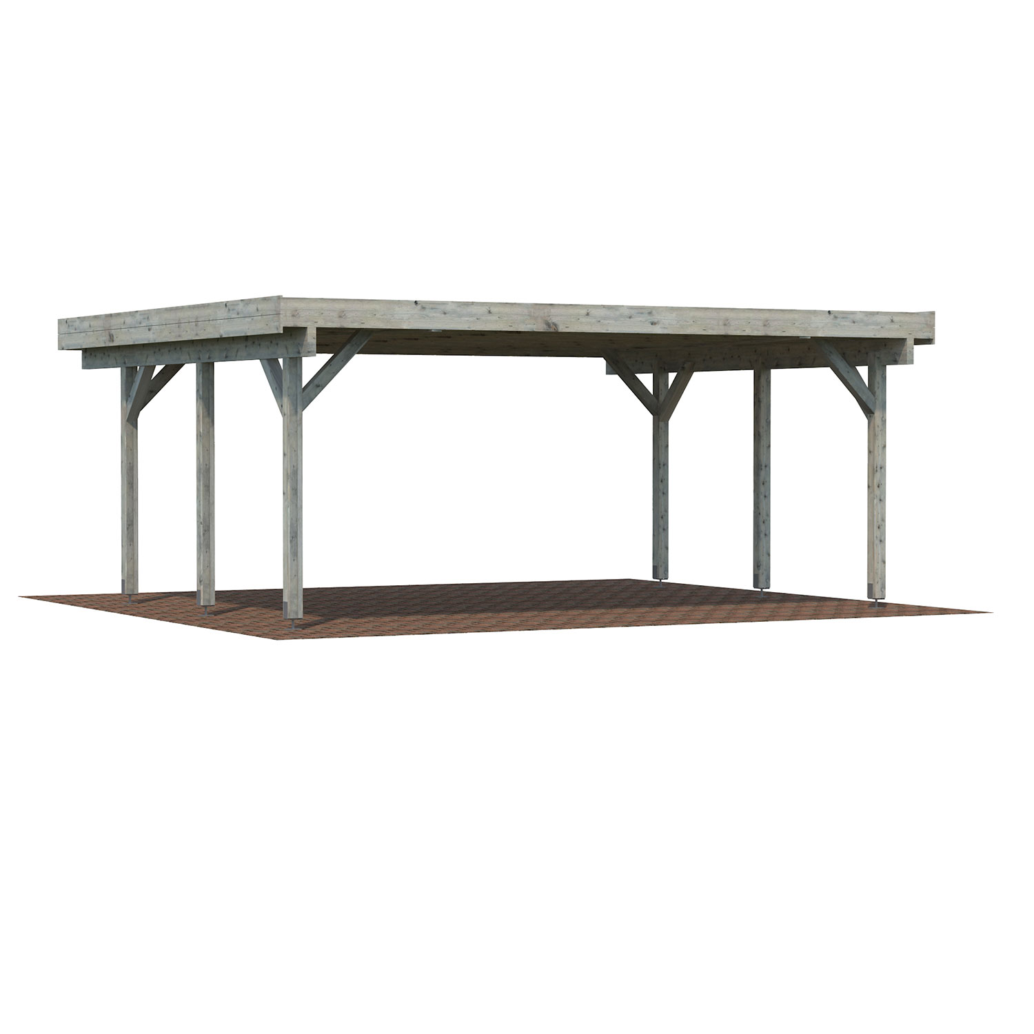 Das Palmako Carport Karl hat eine Grundfläche von 20,6 m² und ist die ideale Möglichkeit Ihr Fahrzeug vor beispielsweise Hagel und Schnee zu schützen. Auch im Sommer steigen Sie in ein Fahrzeug mit angenehmer Temperatur ein. Das nordische Fichtenholz ist grau tauchgrundiert und durch die Herstellung aus robustem Massivholz besonders langlebig und beständig.