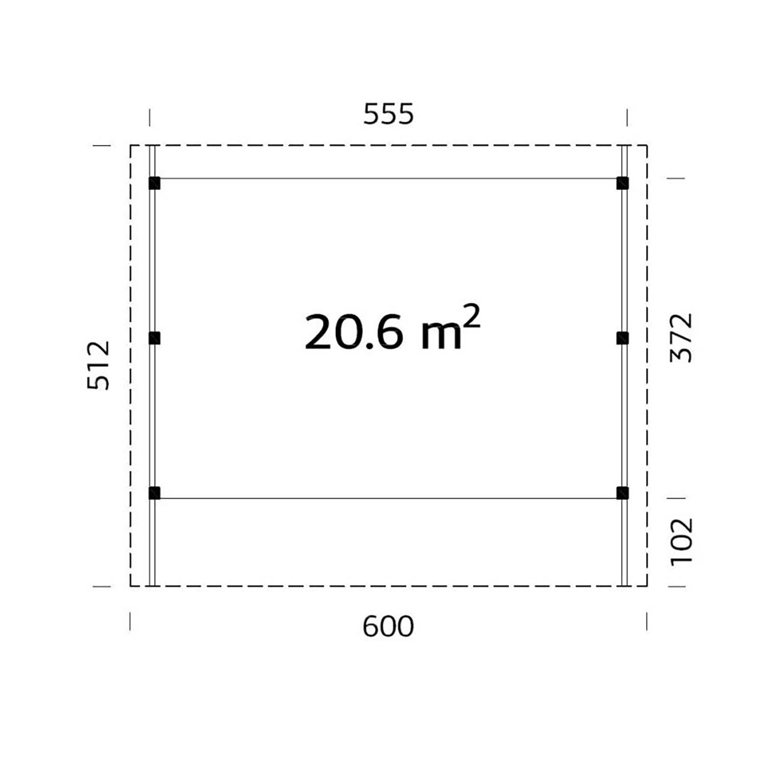 • Bohlenmaß: 600x512 cm