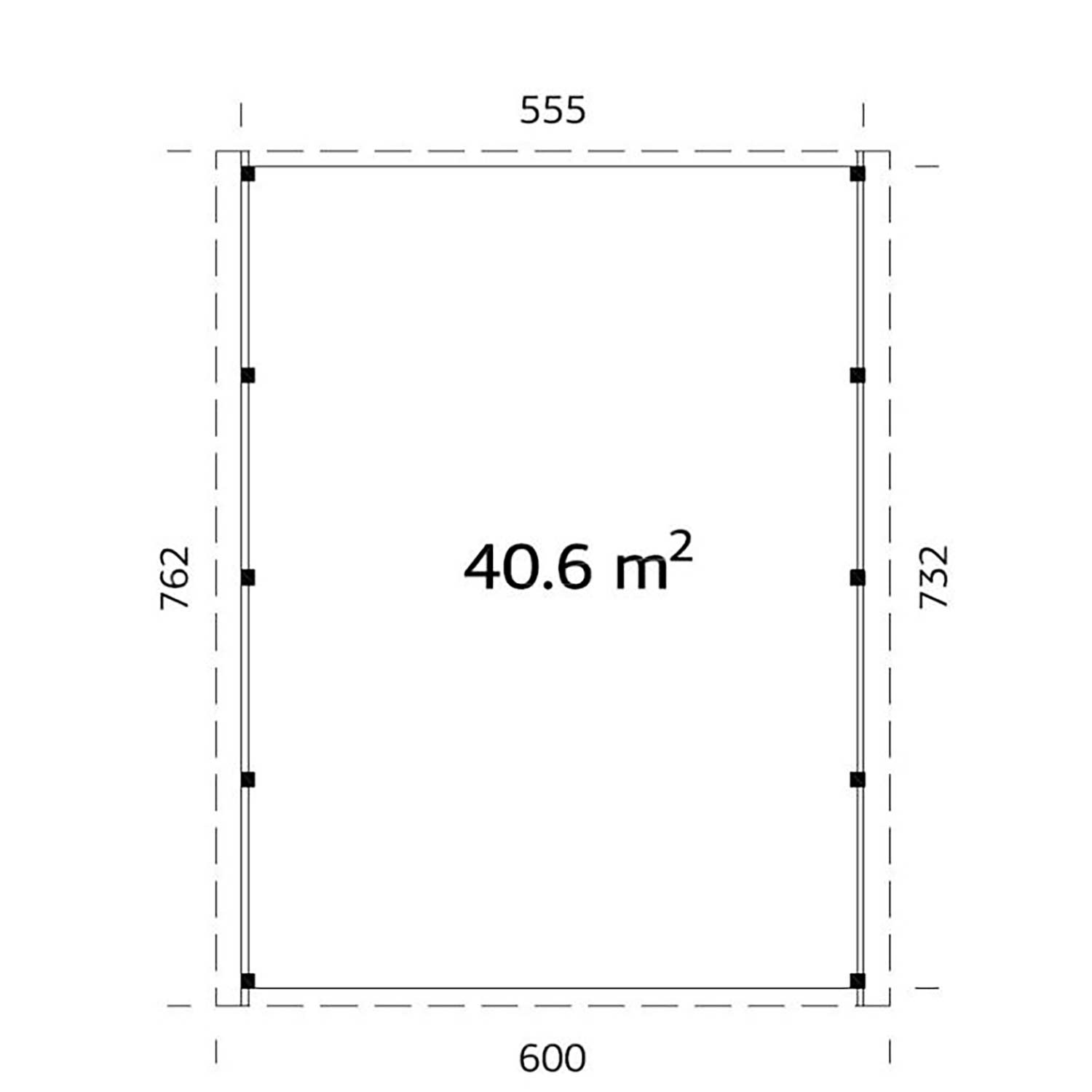 Material: nordisches Fichtenholz Dachform: Flachdach Farbbehandlung / Farbe: weiß grundiert Grundfläche: 40,6 m² Umbauter Raum: 103 m³ Bohlenmaß: 600x762 cm Produktinformation...