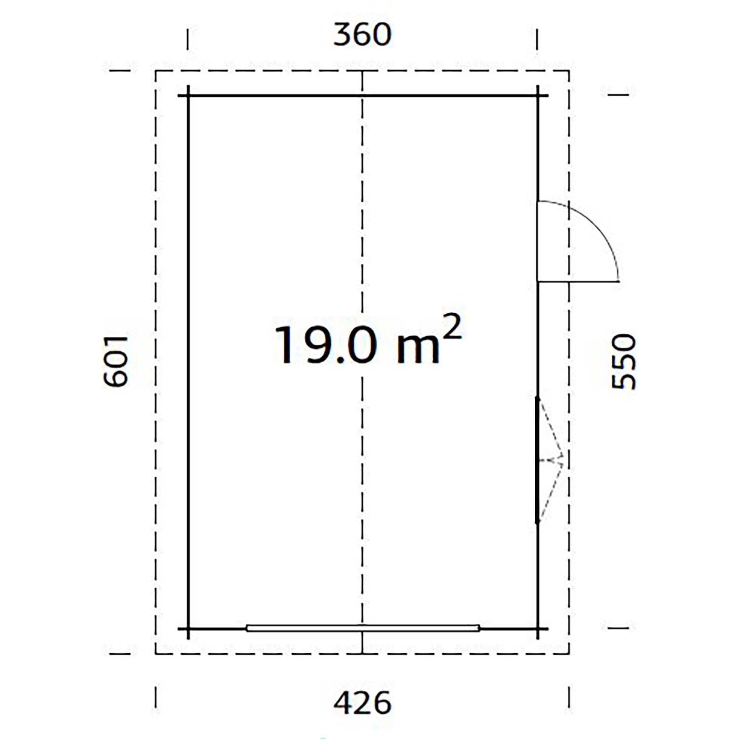 • Grundfläche: 19,0 m²