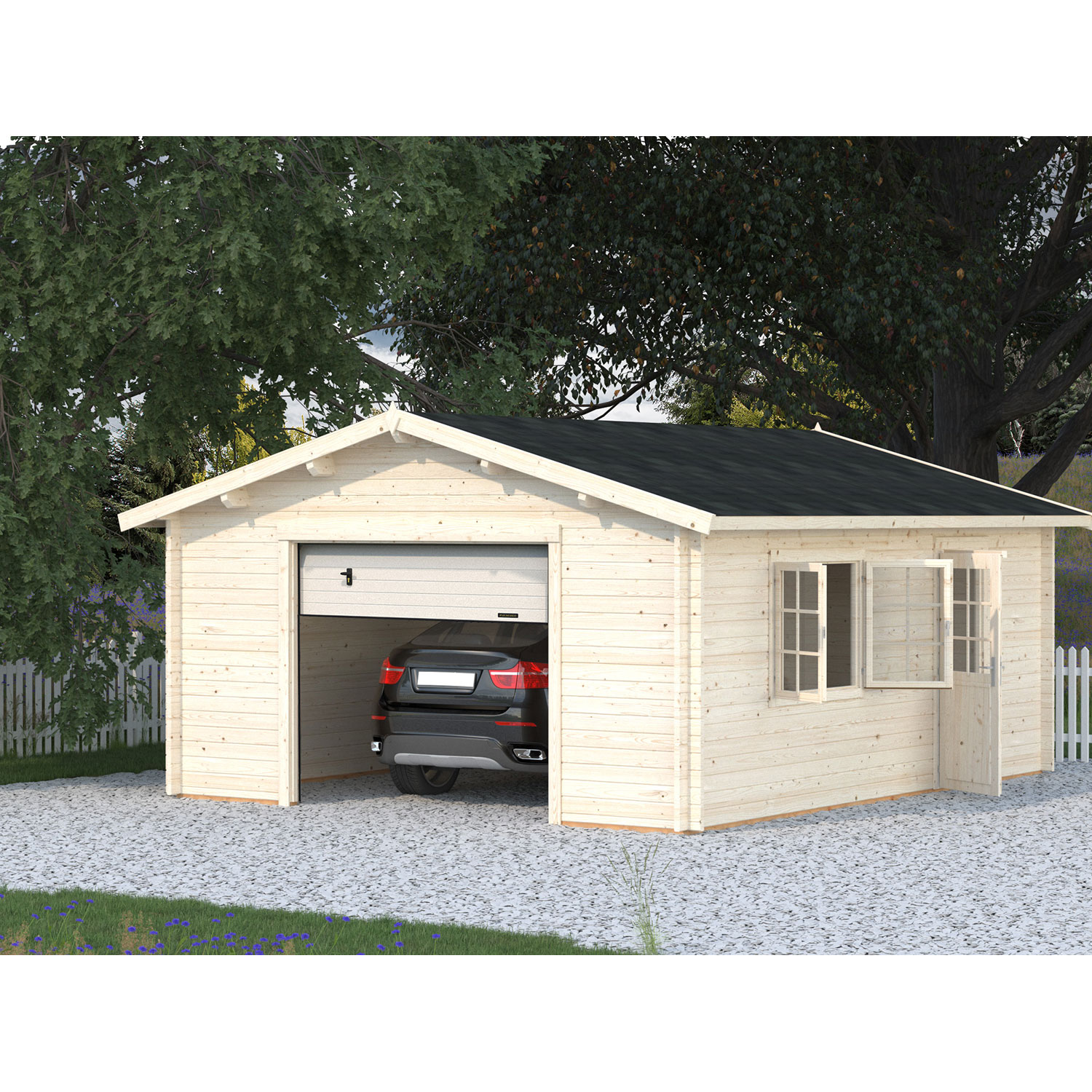 Die Palmako Garage Roger mit Sektionaltor hat eine Grundfläche von 23,9 m² und eine Wandstärke von 44 mm. Die Garagenmodelle von Palmako sind aus nordischer Fichte gefertigt. Das schöne Design passt sich an jedes Grundstück perfekt an. Neben der Möglichkeit Ihr Fahrzeug unterzustellen kann es auch als Gerätehaus dienen. Das nordische Fichtenholz ist transparent tauchgrundiert und durch die Herstellung aus robustem Massivholz besonders langlebig und beständig.