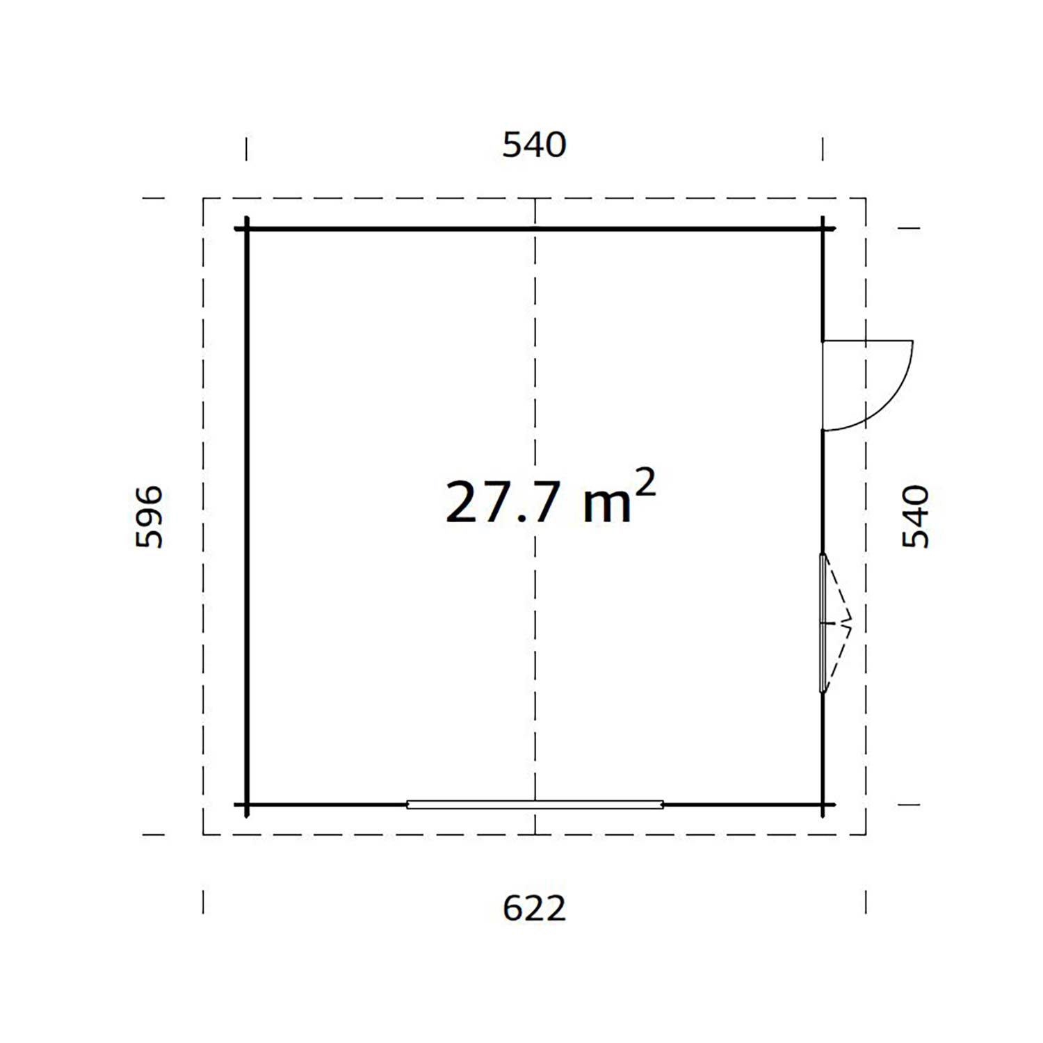 • Grundfläche: 27,7 m²