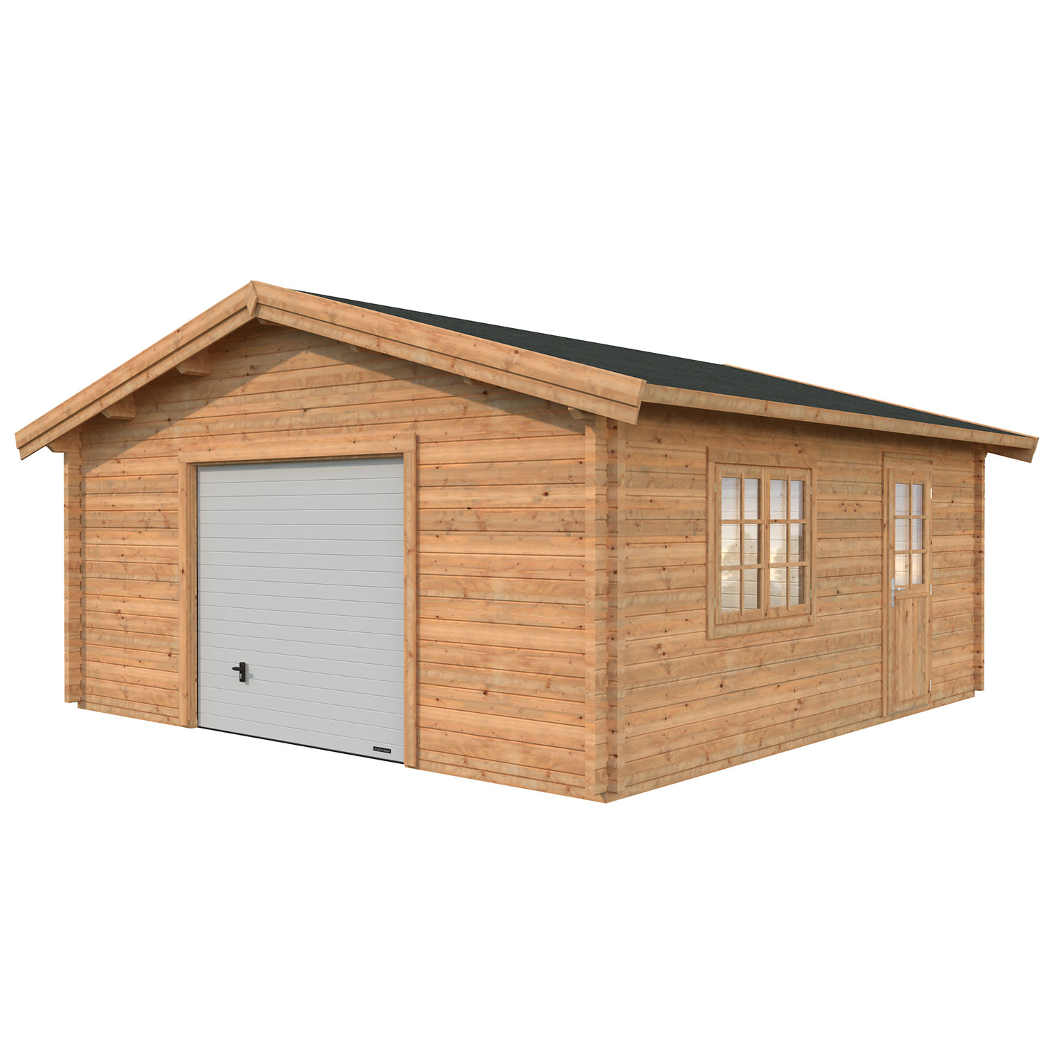 Die Palmako Garage Roger mit Sektionaltor hat eine Grundfläche von 27,7 m² und eine Wandstärke von 70 mm. Die Garagenmodelle von Palmako sind aus nordischer Fichte gefertigt. Das schöne Design passt sich an jedes Grundstück perfekt an. Neben der Möglichkeit Ihr Fahrzeug unterzustellen kann es auch als Gerätehaus dienen. Das nordische Fichtenholz ist hellbraun tauchgrundiert und durch die Herstellung aus robustem Massivholz besonders langlebig und beständig.