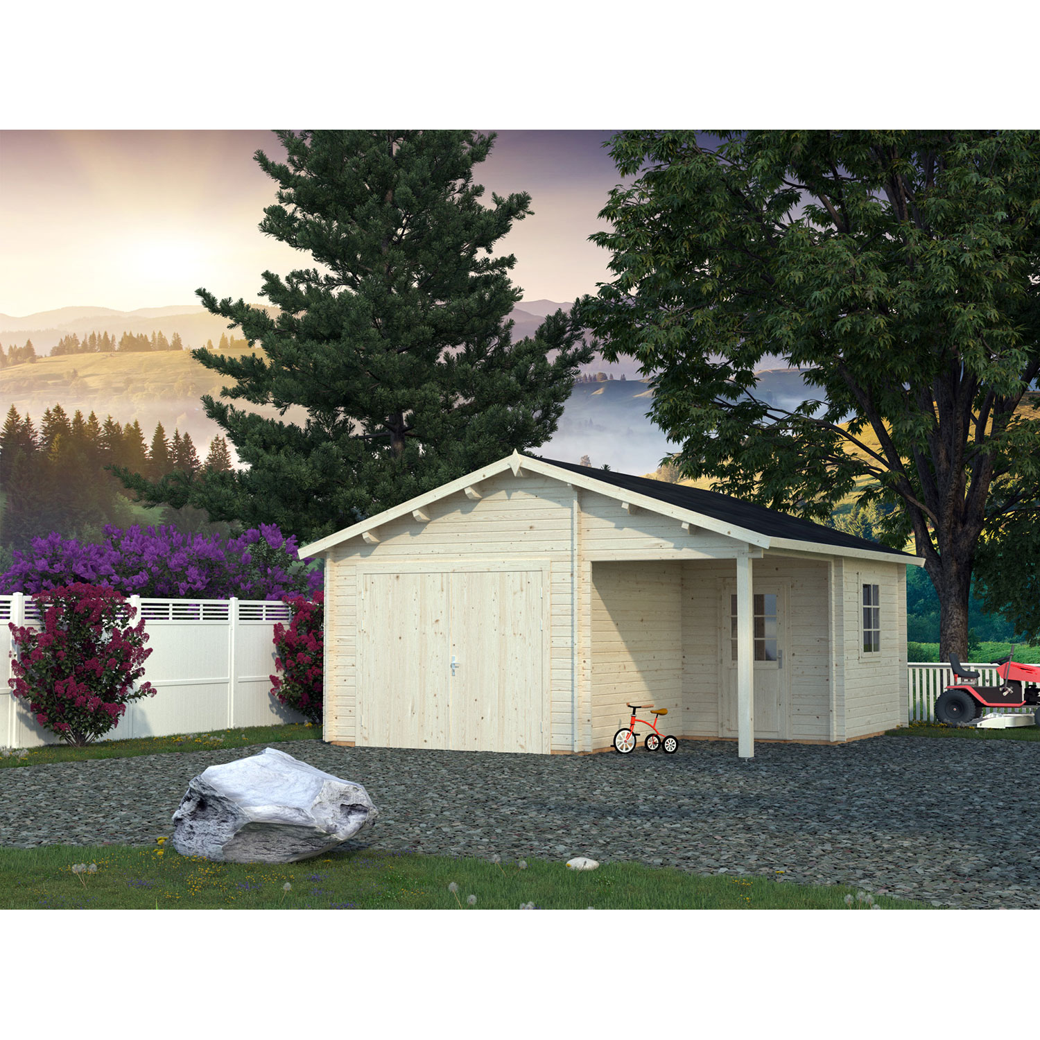 Die Palmako Garage Roger mit Holztor hat eine Grundfläche von 21,9+5,2 m² und eine Wandstärke von 44 mm. Die Garagenmodelle von Palmako sind aus nordischer Fichte gefertigt. Das schöne Design passt sich an jedes Grundstück perfekt an. Neben der Möglichkeit Ihr Fahrzeug unterzustellen kann es auch als Gerätehaus dienen. Das nordische Fichtenholz ist transparent tauchgrundiert und durch die Herstellung aus robustem Massivholz besonders langlebig und beständig.