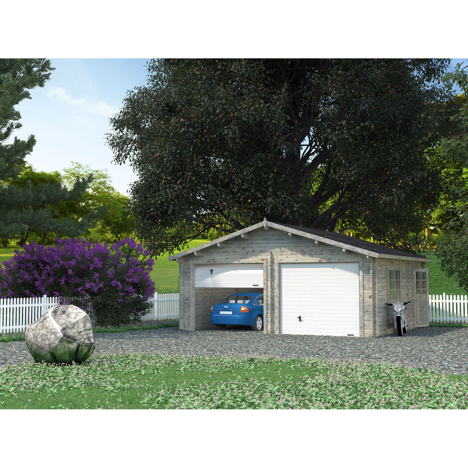 Die Palmako Garage Roger mit Sektionaltor hat eine Grundfläche von 28,4 m² und eine Wandstärke von 44 mm. Die Garagenmodelle von Palmako sind aus nordischer Fichte gefertigt. Das schöne Design passt sich an jedes Grundstück perfekt an. Neben der Möglichkeit Ihr Fahrzeug unterzustellen kann es auch als Gerätehaus dienen. Das nordische Fichtenholz ist grau tauchgrundiert und durch die Herstellung aus robustem Massivholz besonders langlebig und beständig.