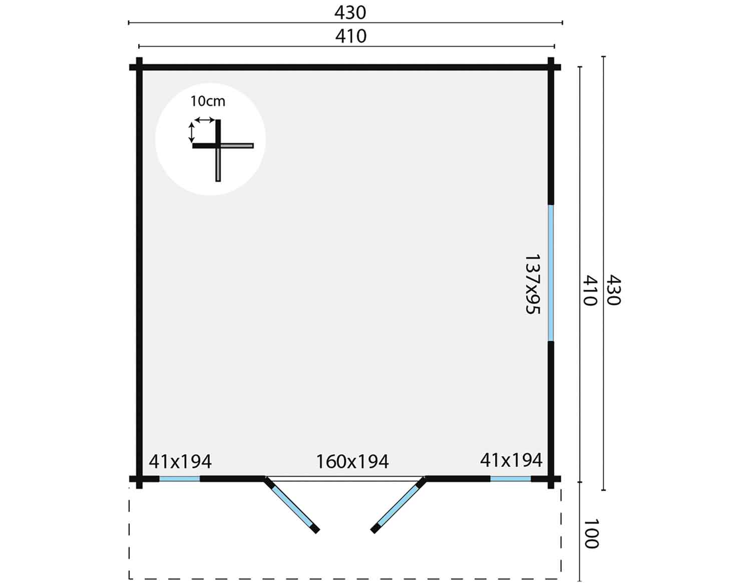 • Maße 430x 430 x 250 cm