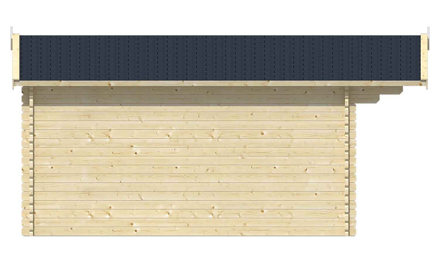 Dacheindeckung ist nicht im Lieferumfang enthalten. Es werden 36,5 m² Dachpappe oder 30 m² Dachschindel benötigt.