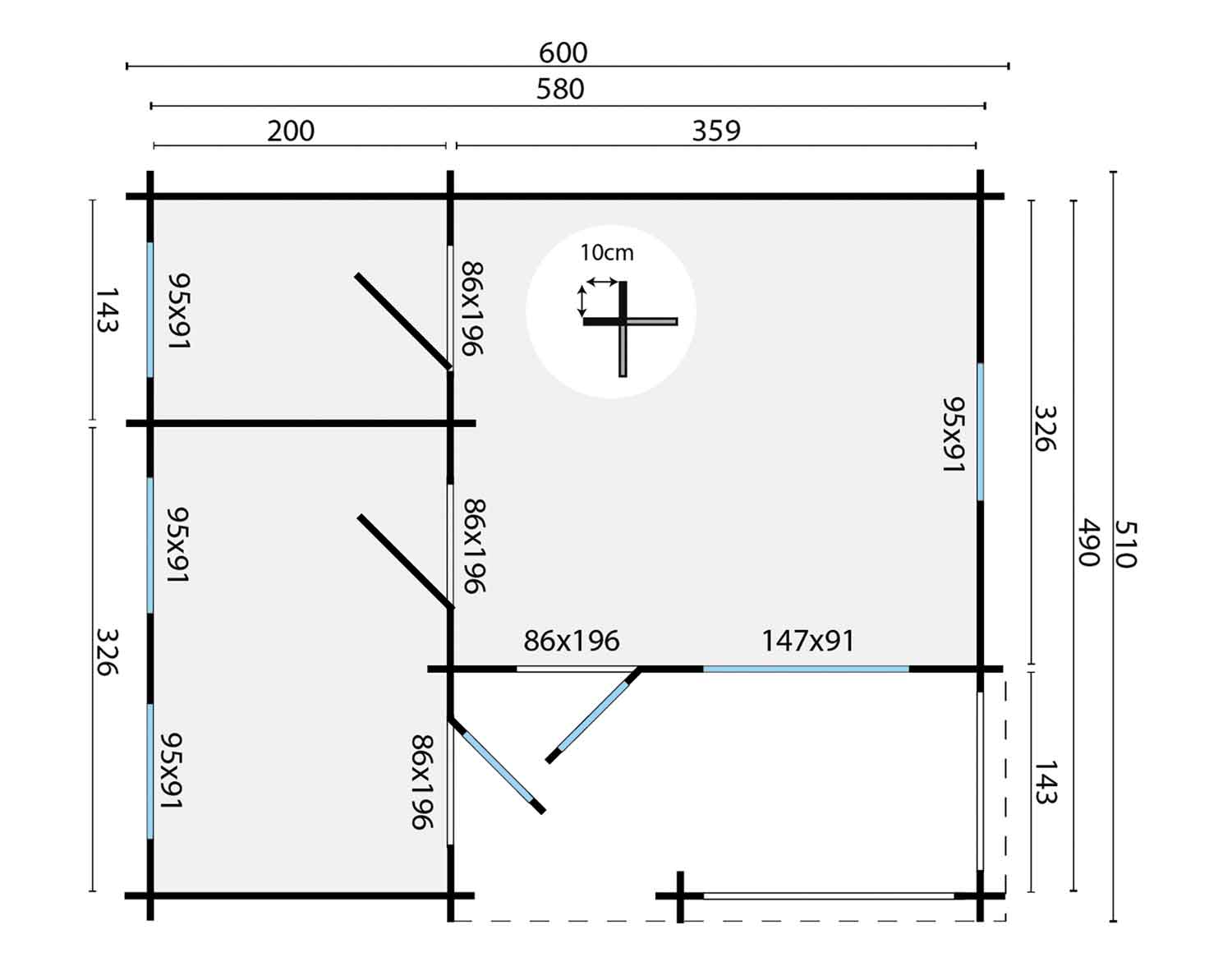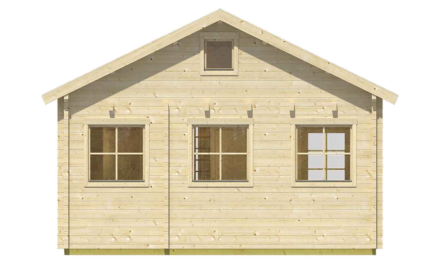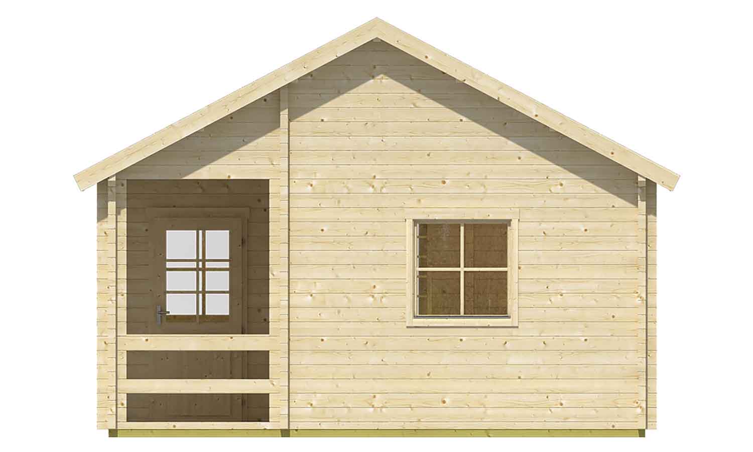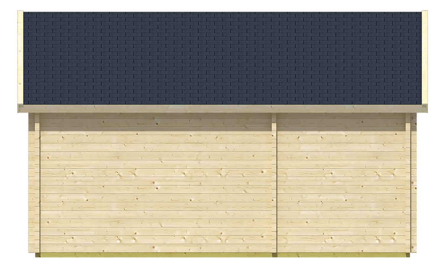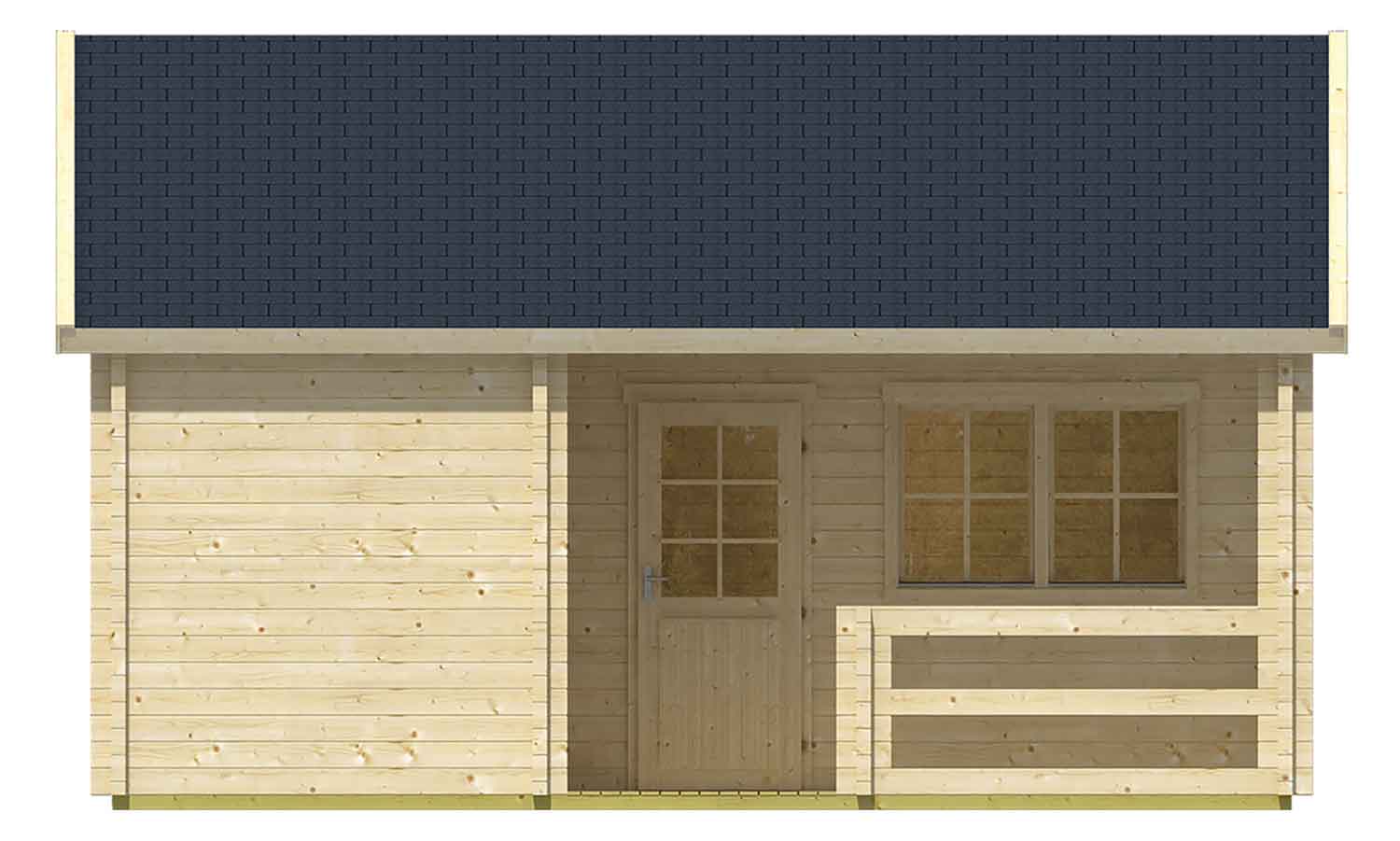 Fenster, Türen und die Dacheindeckung sind nicht im Lieferumfang enthalten. Es wird 38,2 m² Dachpappe benötigt