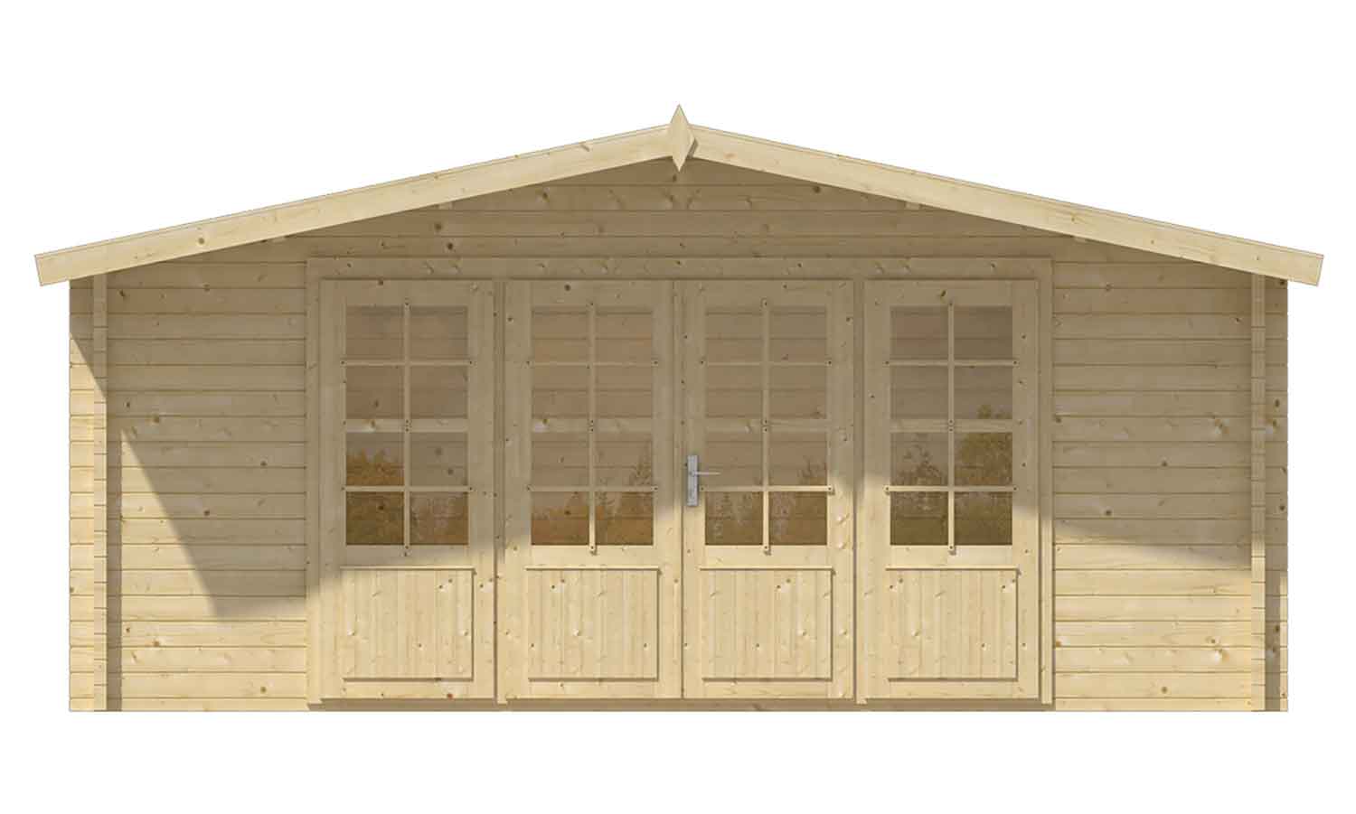 Das naturbelassene Blockhaus ist ein Highlight in Ihrem Garten. Als Gartenhaus oder Unterstellmöglichkeit kann es vielseitig eingesetzt werden. Die 58 mm dicken Wände sorgen dafür, dass Sie es auch bei kühleren Temperaturen nutzen können. Das unbehandelte Holz kann von Ihnen nach Belieben gestrichen werden. Durch die Fenster sowie die halbverglaste Doppeltür wird der Raum mit Licht durchflutet.