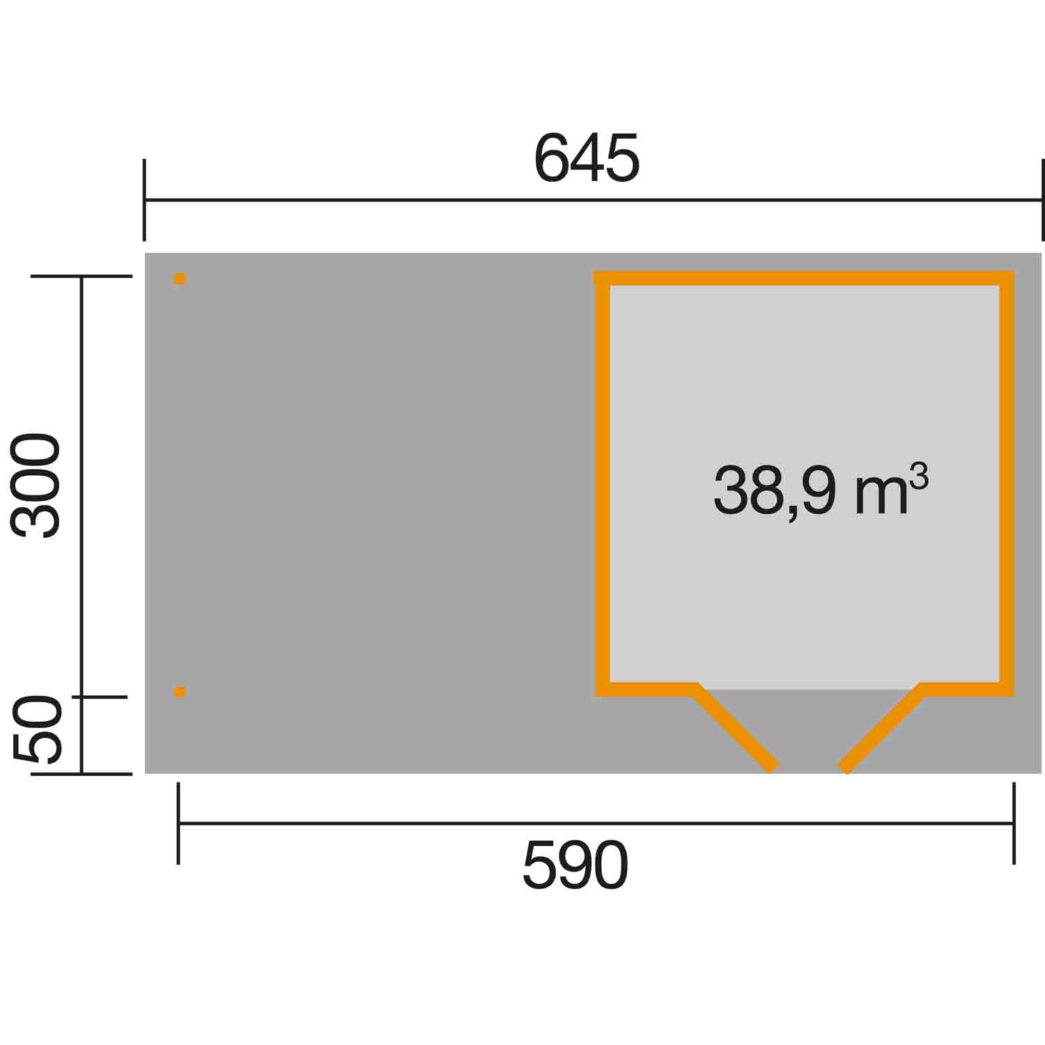 Mit einem Außenmaß von B 645 x T 377 x H 225 bietet es viel Platz für entspannte Stunden im eigenen Garten. Die Nutzfläche des Gartenhauses beträgt 17,76 m².