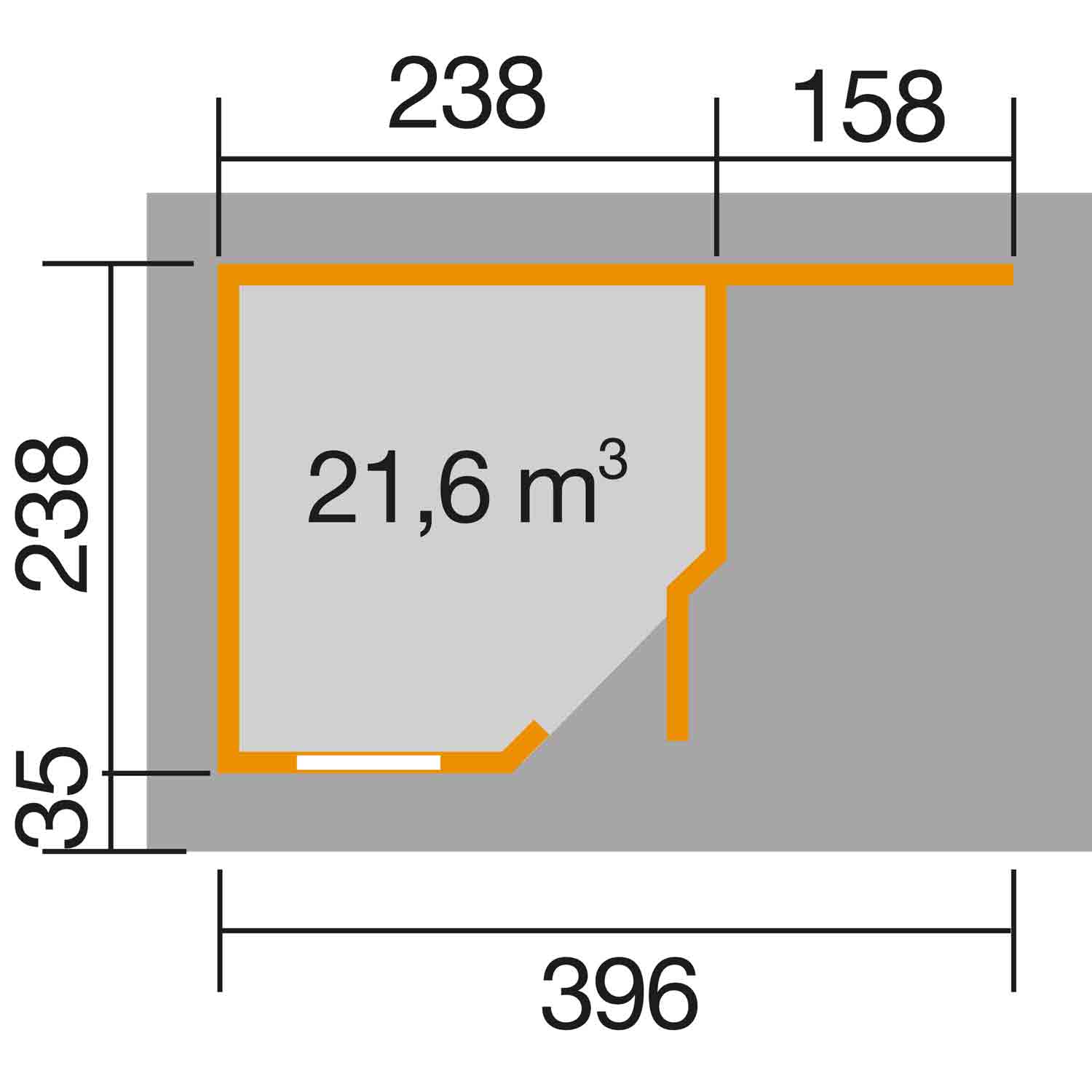 Dateien & Downloads "Weka Designhaus 213 A Gr.1| 5-Eck| anthrazit| 28 mm| Einzeltür | Anbau 150 cm"