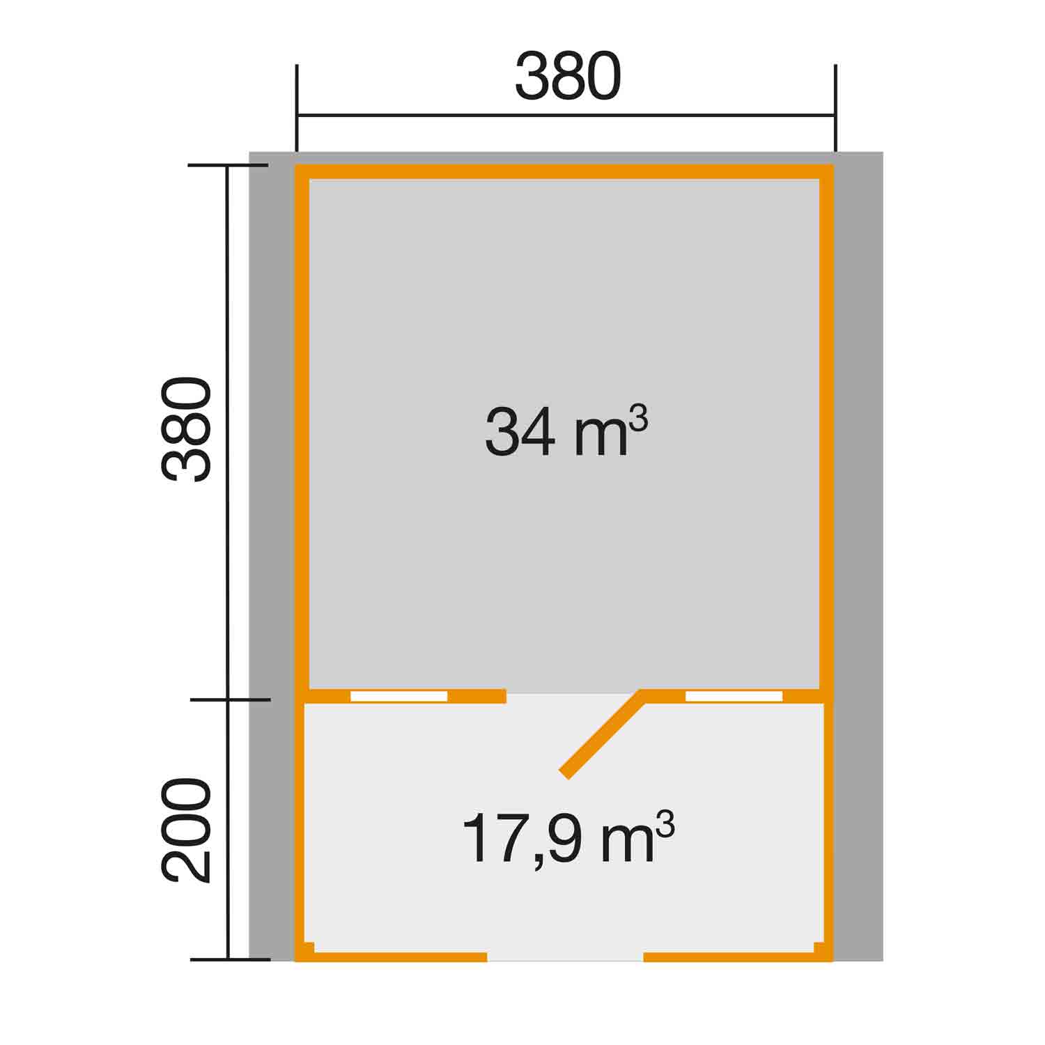 Mit einem Außenmaß von B 460 x T 594 x H 266 bietet es viel Platz für entspannte Stunden im eigenen Garten. Die Nutzfläche des Gartenhauses beträgt 19,00 m².