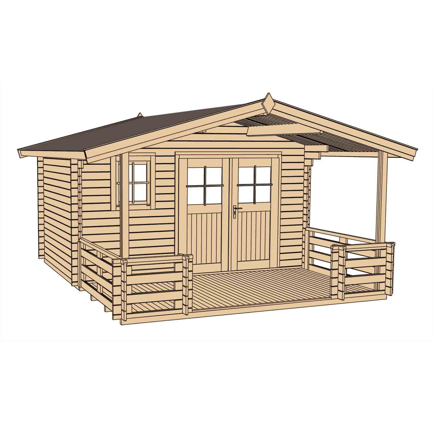 Wandstärke: 28 mm Material: europäische Fichte Dachform: Satteldach Dachstärke: 19 mm inkl. überdachter Terrasse mit Geländer inkl. 19 mm starken Massivholzboden inkl. Doppeltür und...