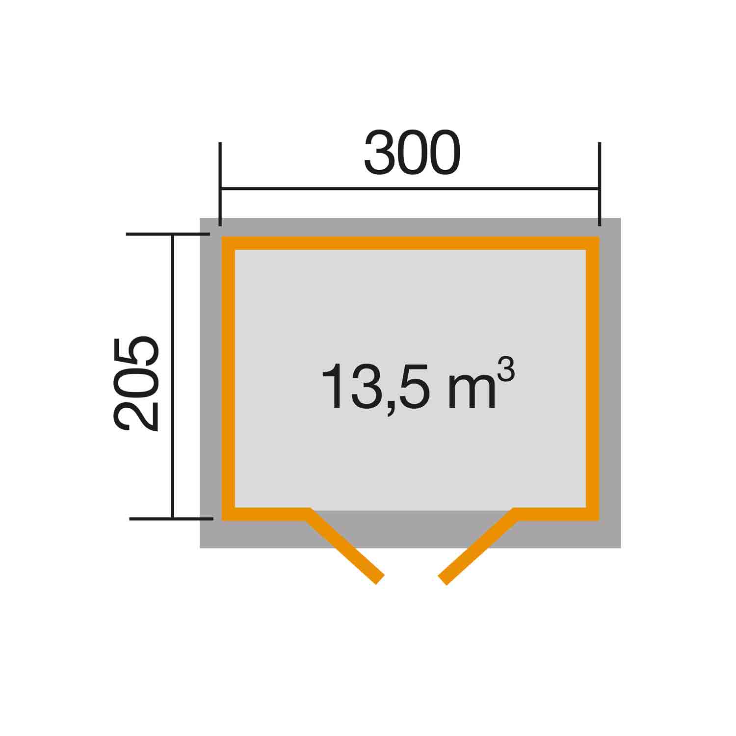 Mit einem Außenmaß von B 380 x T 239 x H 253 bietet es viel Platz für entspannte Stunden im eigenen Garten. Die Nutzfläche des Gartenhauses beträgt 4,94 m².