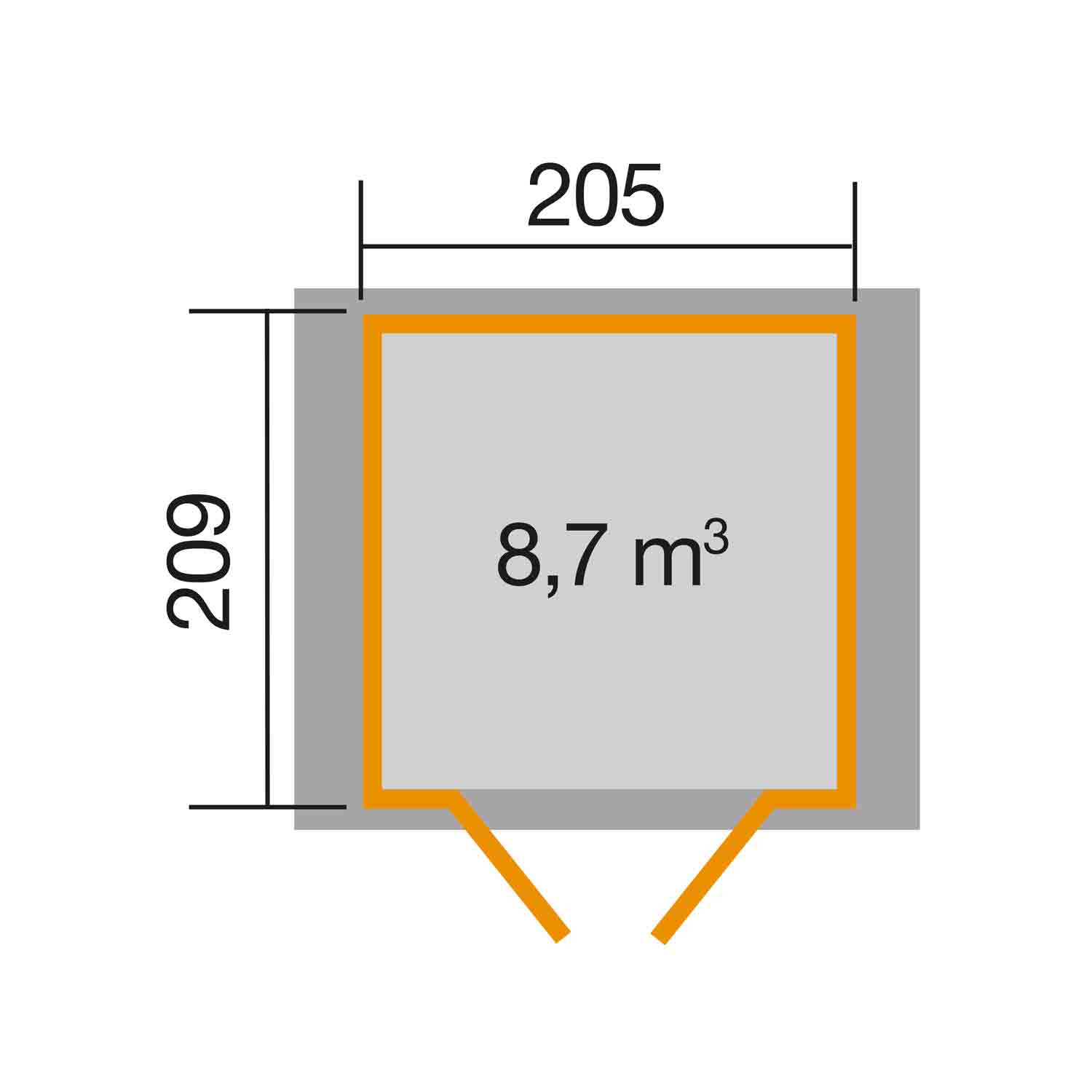 • Sockelmaß in cm: B 205 x T 209