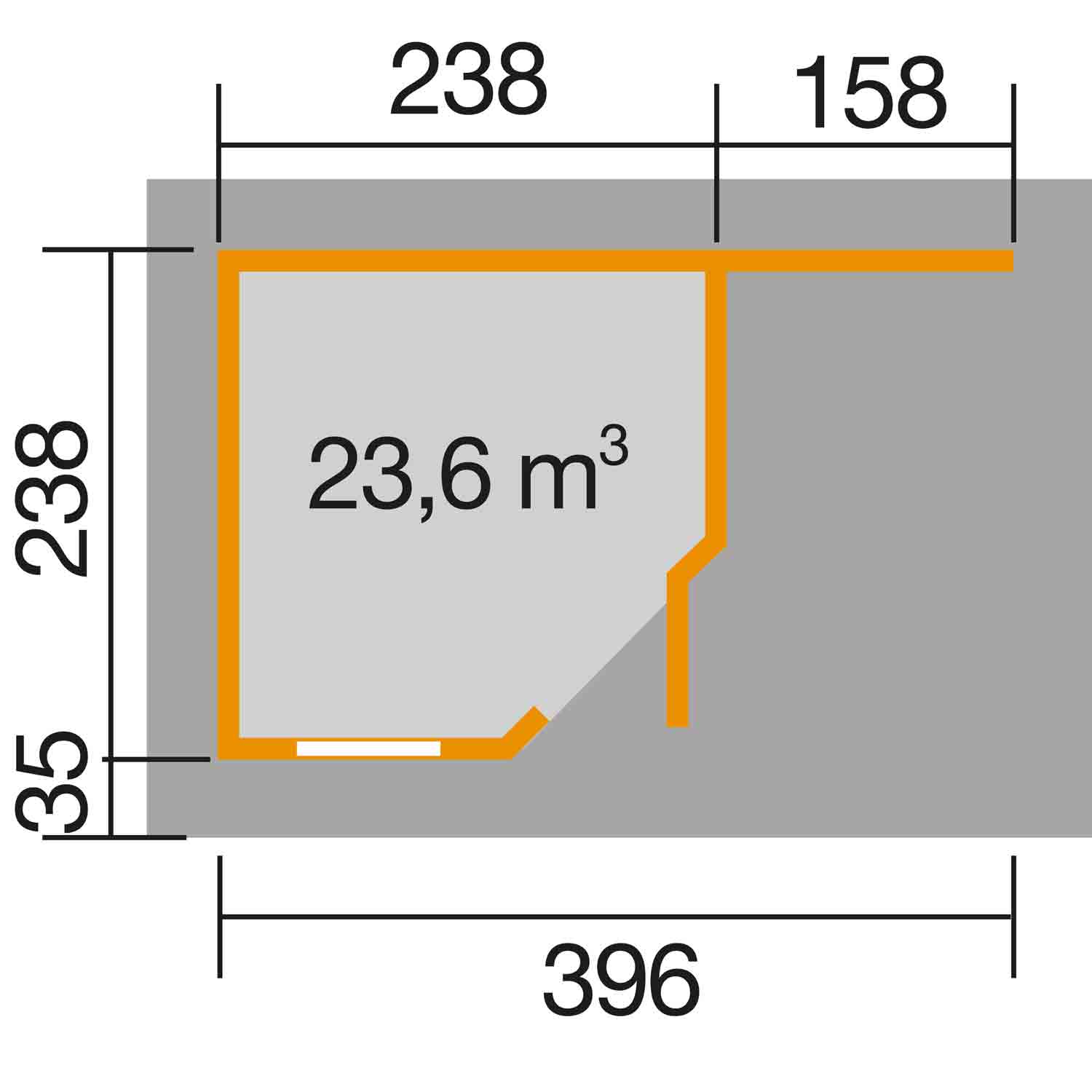 • Sockelmaß in cm: B 396 x T 238