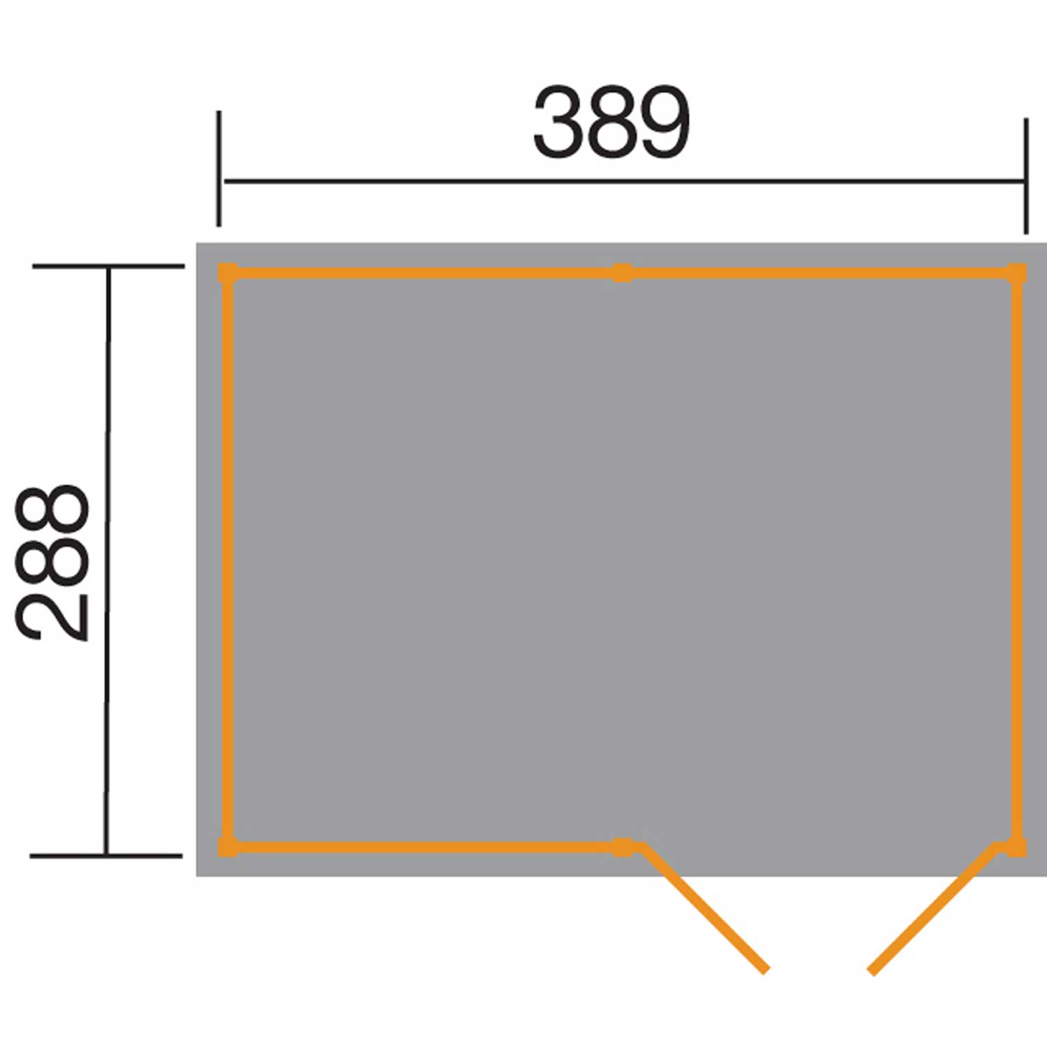 • Sockelmaß in cm: B 389 x T 288