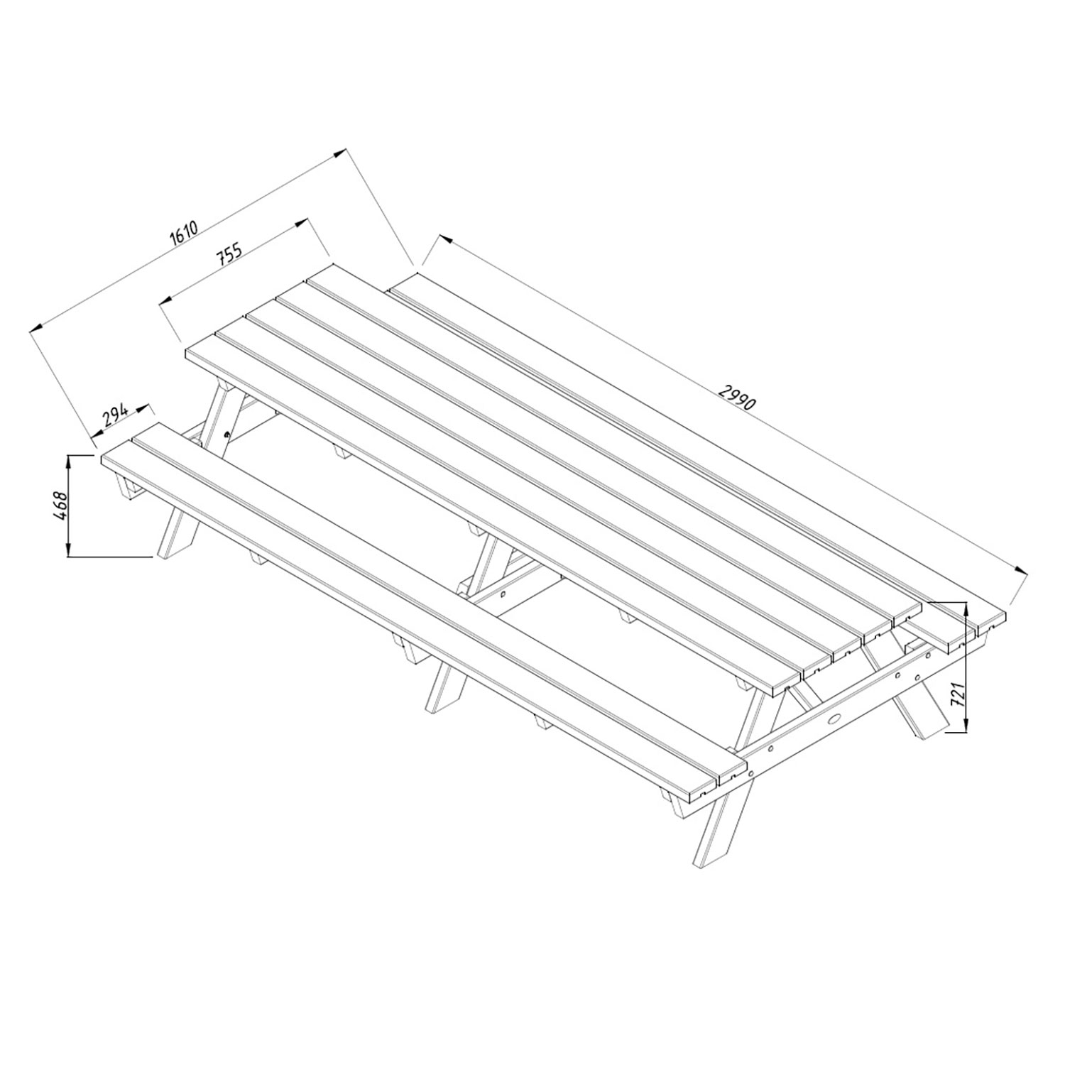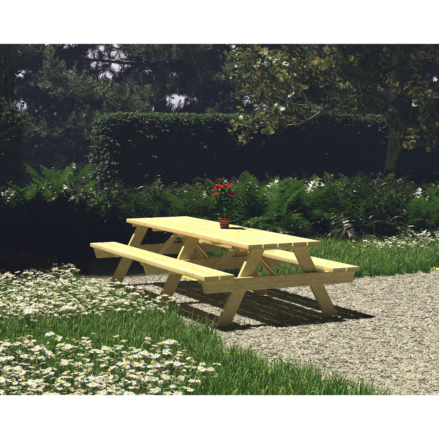 Der Palmako Picknicktisch Ruby passt einfach in jeden Garten. Mit einer Breite von 299 cm finden ca. 8 Personen am Tisch Platz. Das vorbehandelte Holz aus nordischer Fichte ist robust und langlebig zugleich. Die Bänke sind fest am Tisch angebracht. Einem Grillabend oder Picknick mit Freunden oder Familie steht nicht mehr im Wege.