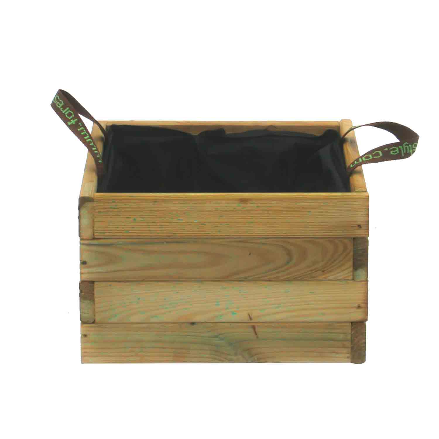 Der Pflanzkasten Lena kommt mit dem Außenmaß 40x40xh27 cm, ist fertig montiert und beinhaltet ein konfektioniertes Geotextil. Der Pflanzkasten bietet reichlich Platz für Ihre Pflanzen. Die Handhabung wird durch zwei praktische Tragegriffe erleichtert.