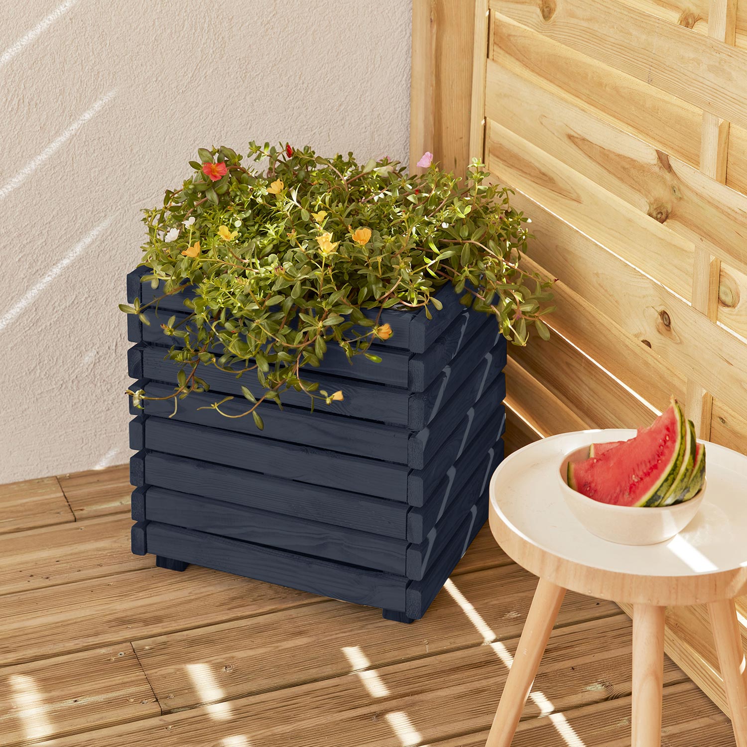 Der Pflanzkasten verschönert Ihre Terrasse oder den Garten im Handumdrehen. Das vorbehandelte Holz sorgt für Langlebig- und Witterungsbeständigkeit.