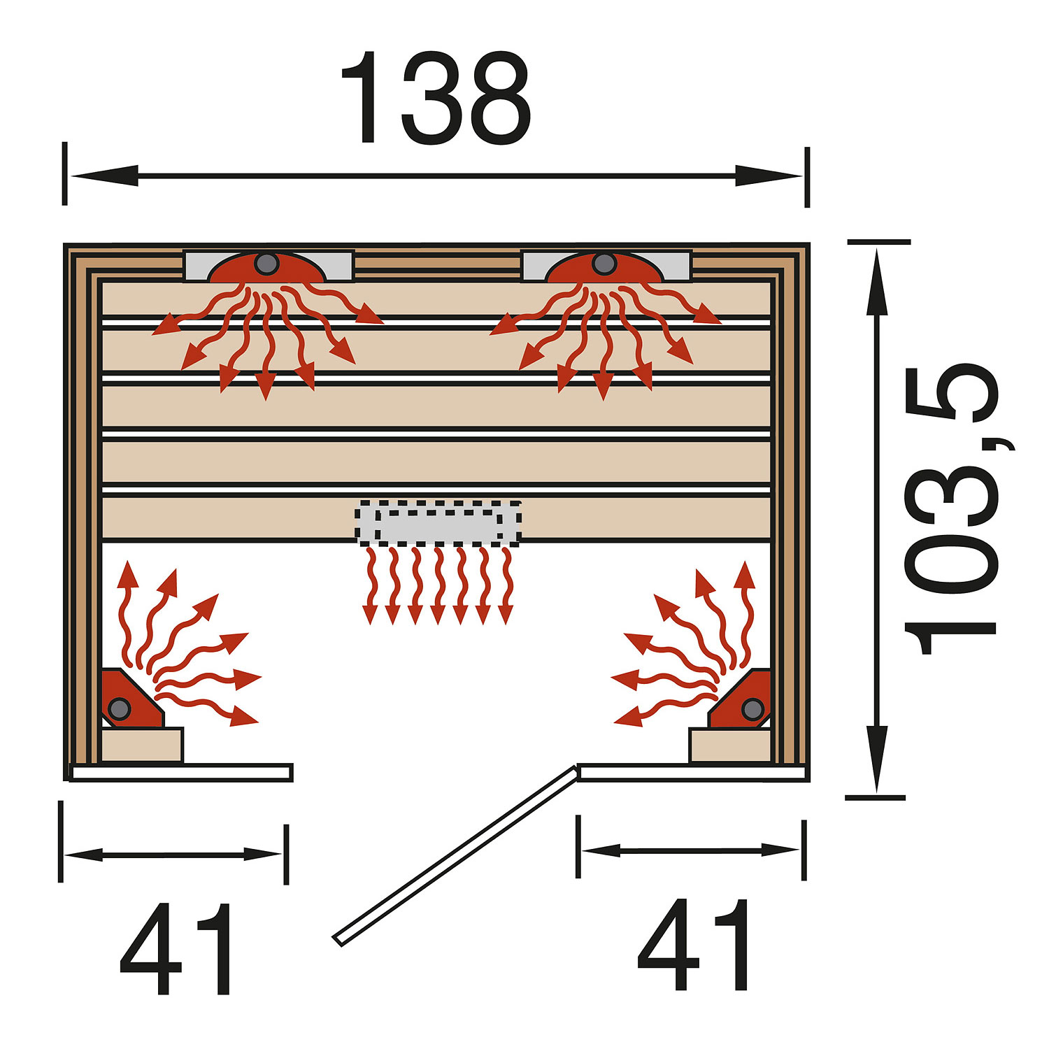 • gezielte Wärmeabgabe durch Rücken-, Bein- und Frontstrahler (WEKA-Linienstrahler)