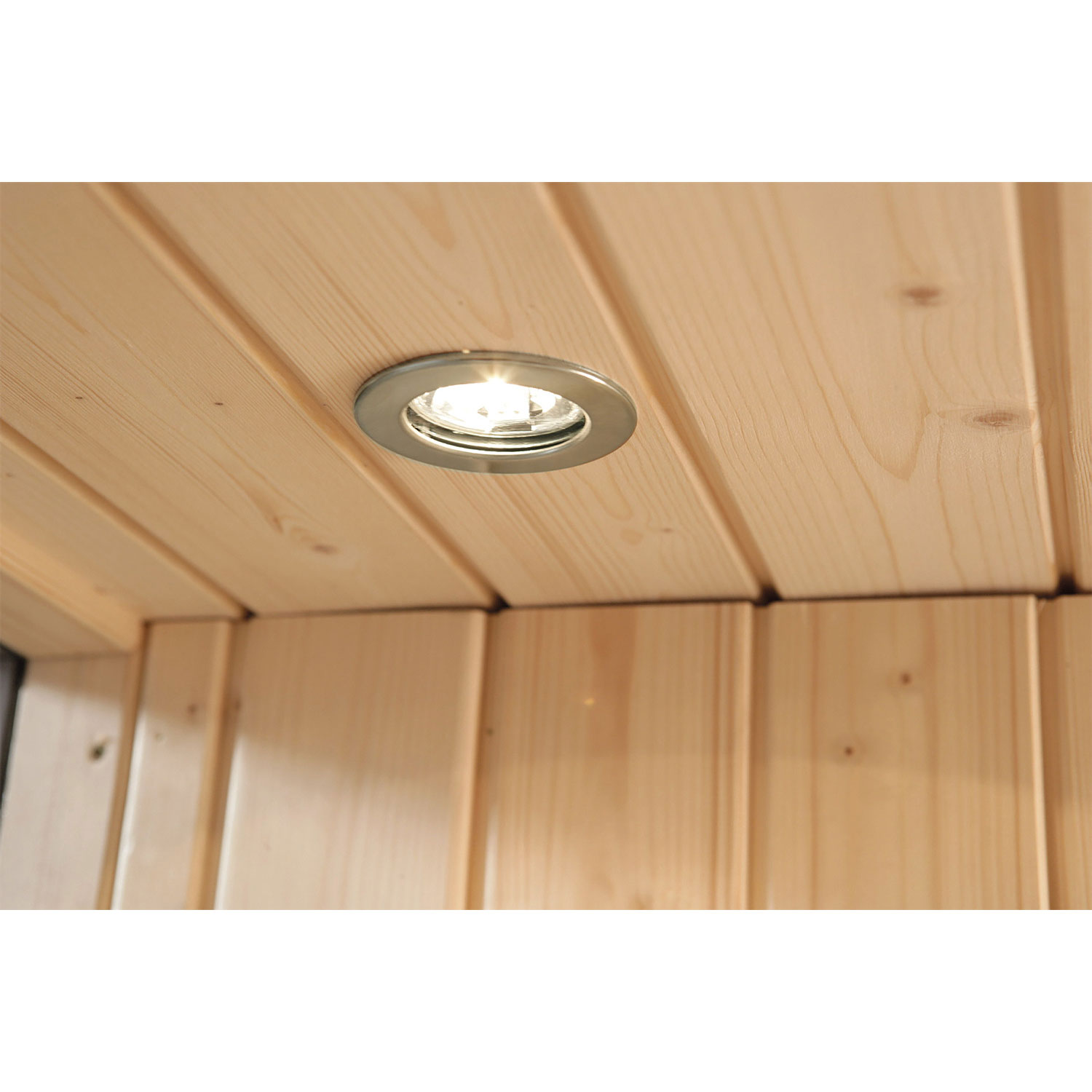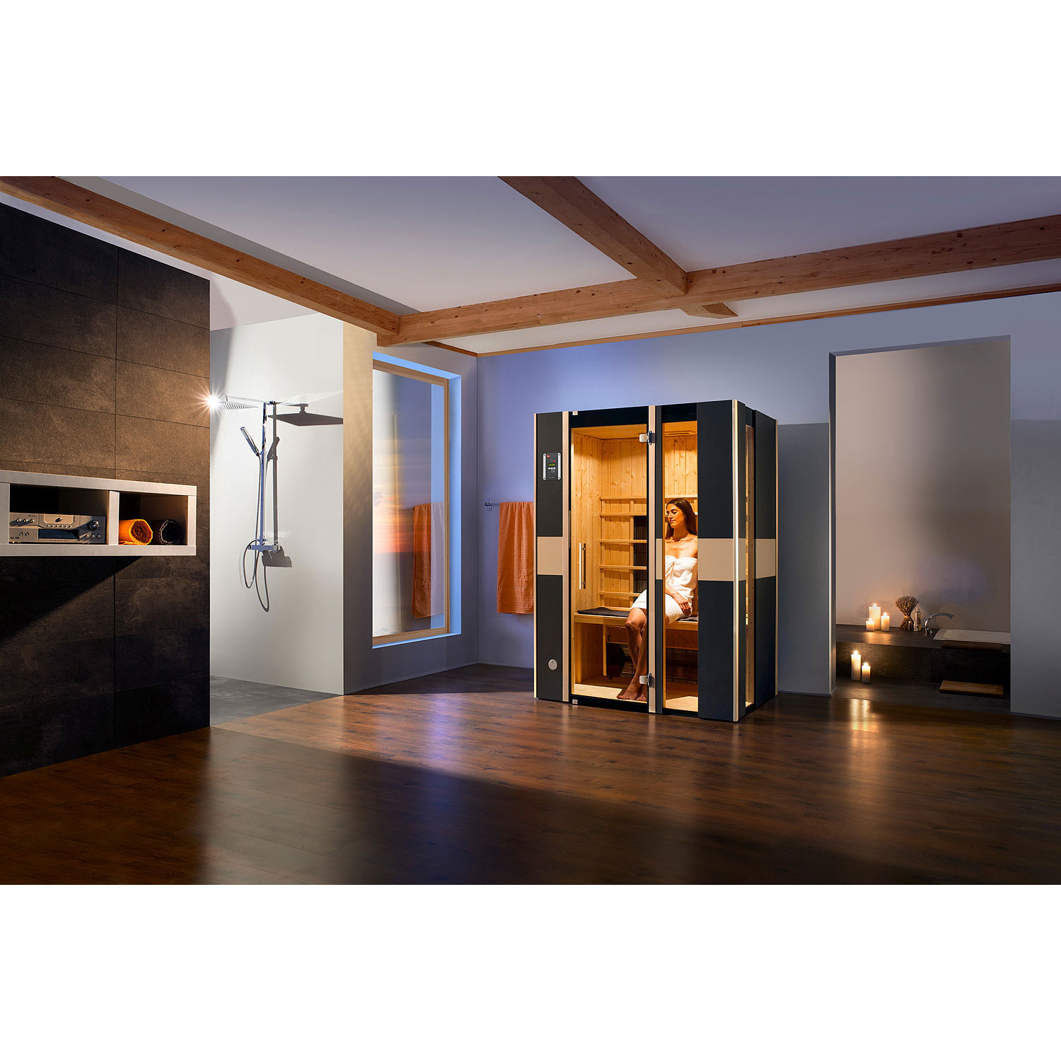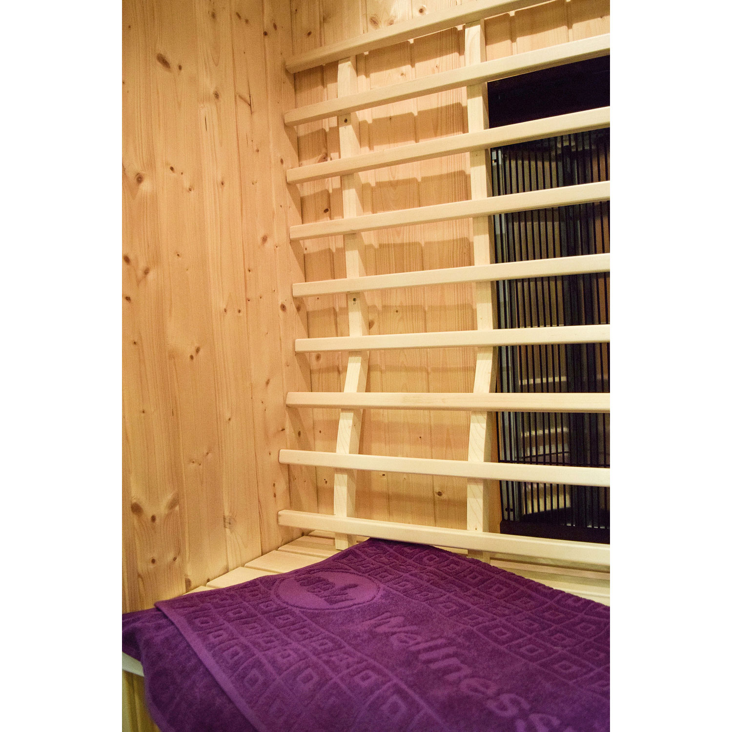 Die schöne Weka Infrarotkabine Mila 2 wurde aus europäischer Fichte und mit 63 mm starken Wandbrettern gefertigt. Die Elementbauweise sorgt für einen einfachen Aufbau und eine sehr stabile Konstruktion.