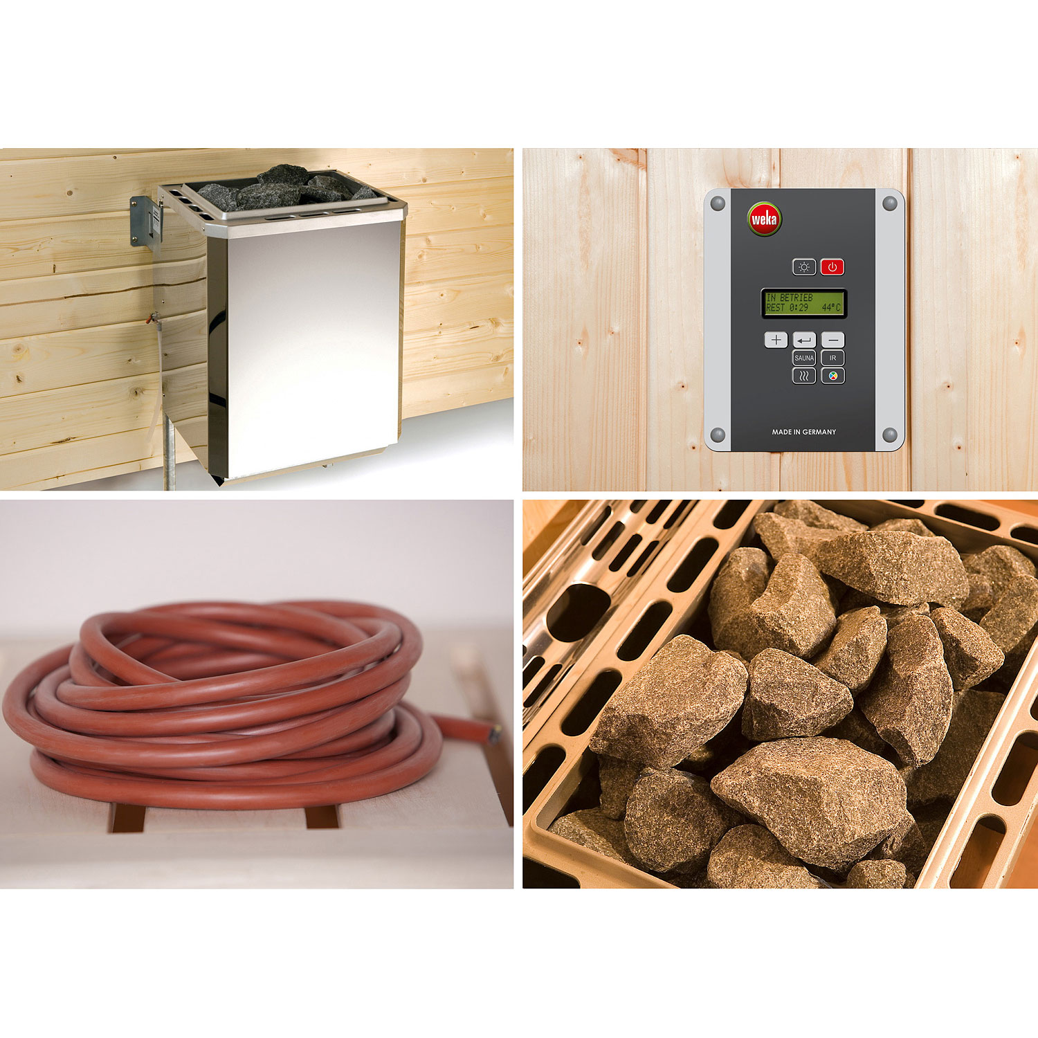 • inklusive 7,5 kW Klassikofen, digitaler Steuerung und Silikonanschlusskabel