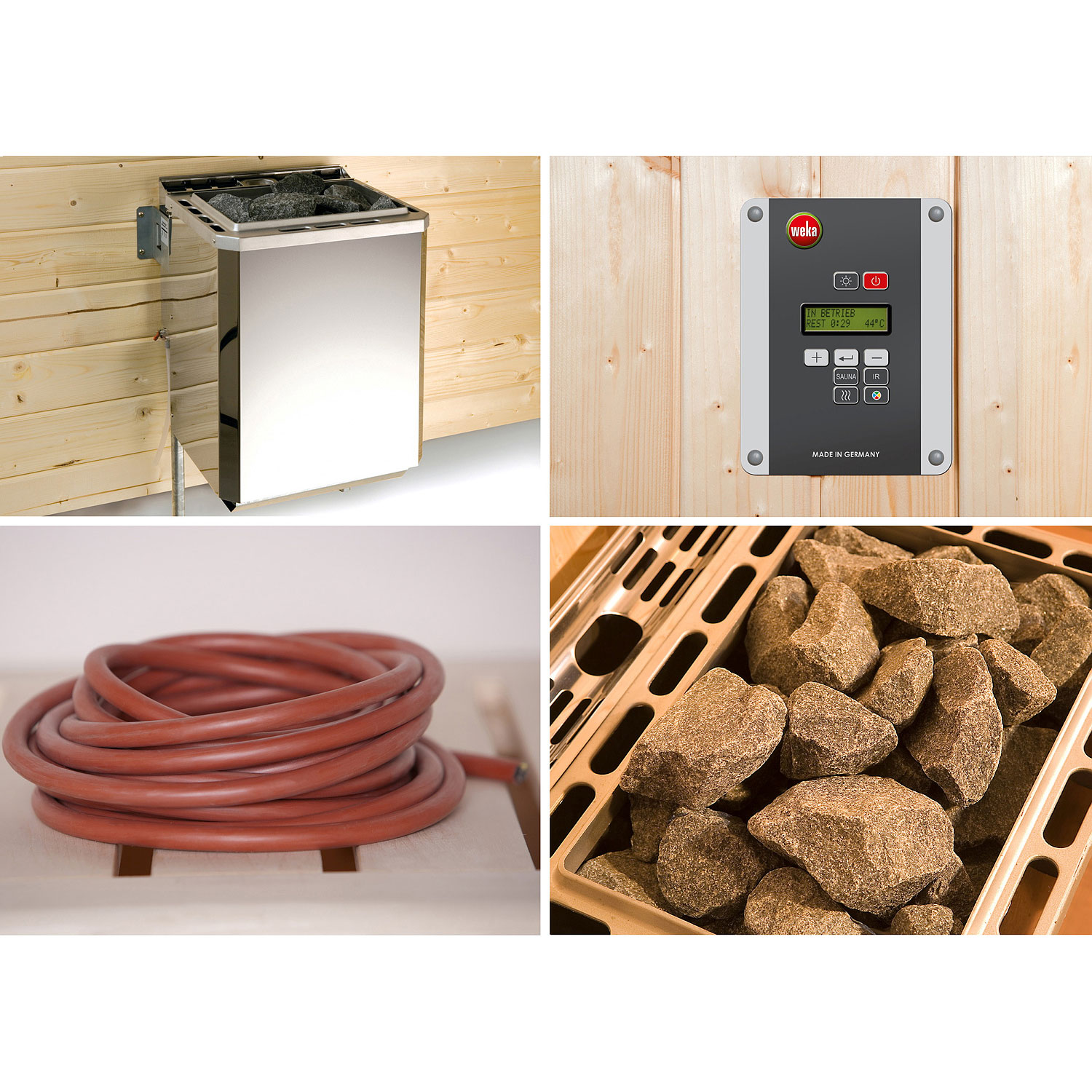 • inklusive 7,5 kW BioS Saunaofen, digitaler Steuerung und Silikonanschlusskabel