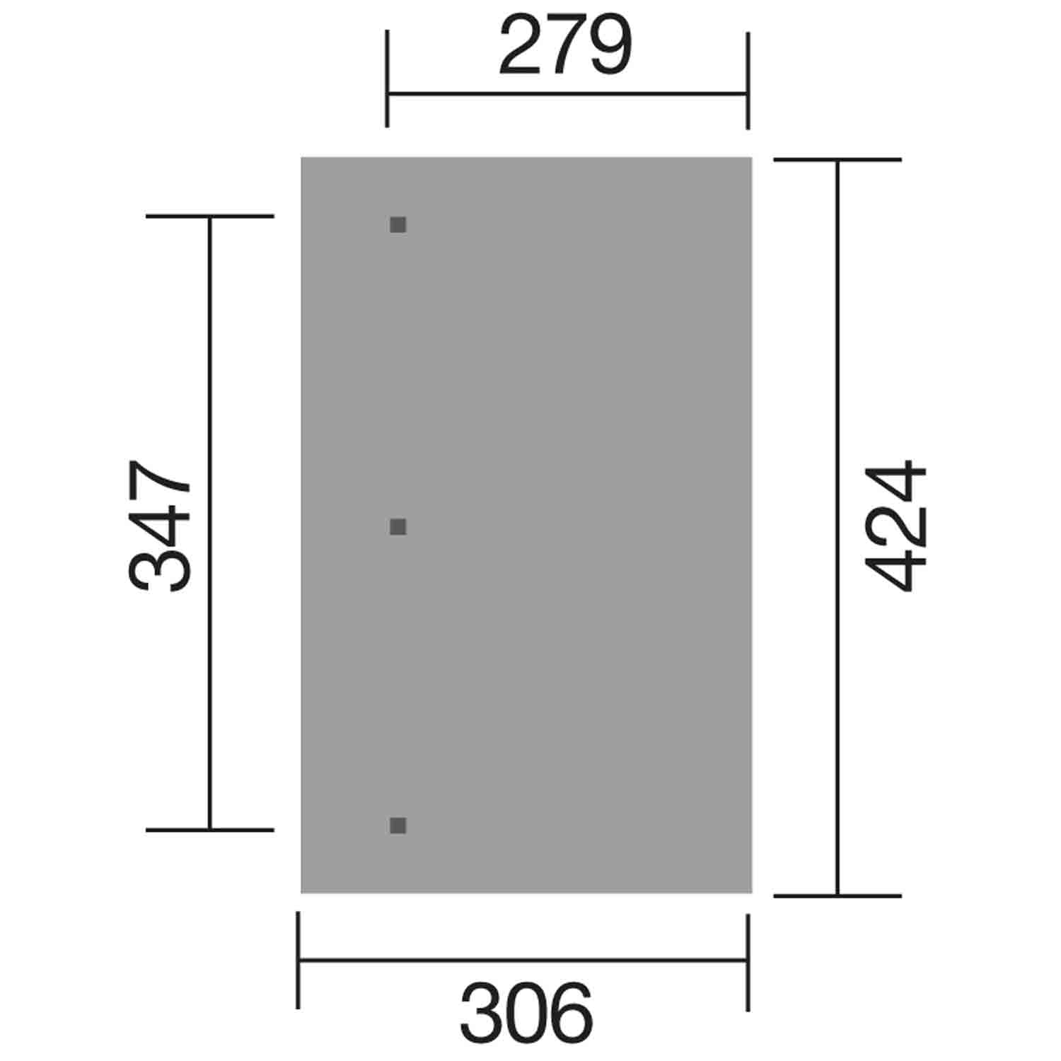 • Außenmaß in cm: B 424 x T 306 x H 271