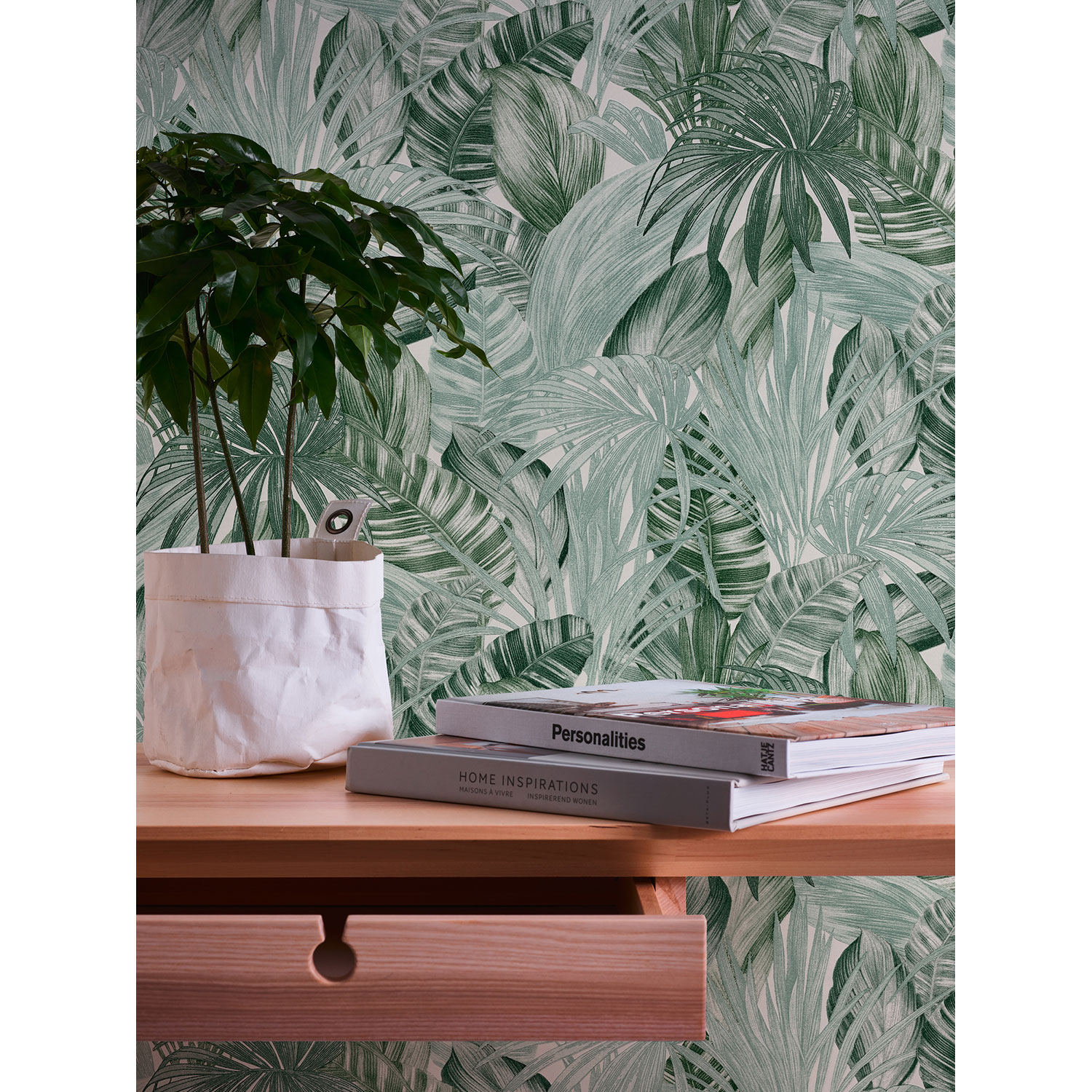 Die Kollektion enthält viele Tapeten mit Pflanzenmotiven aus dem Dschungel. Etliche Grüntöne und Motive bringen die Wildnis in Ihr Heim.