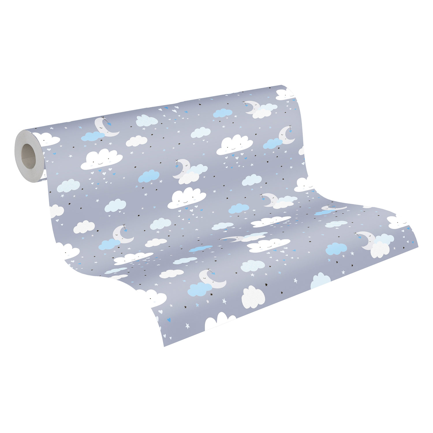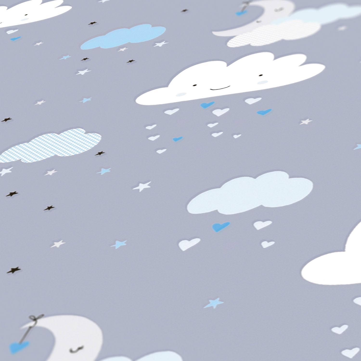 Die Wolken und Himmel-Motive lassen Kinderherzen höherschlagen. Somit präsentiert sich die Tapete niedlich und fantasievoll.