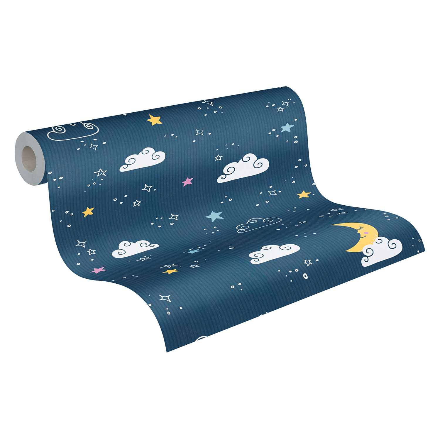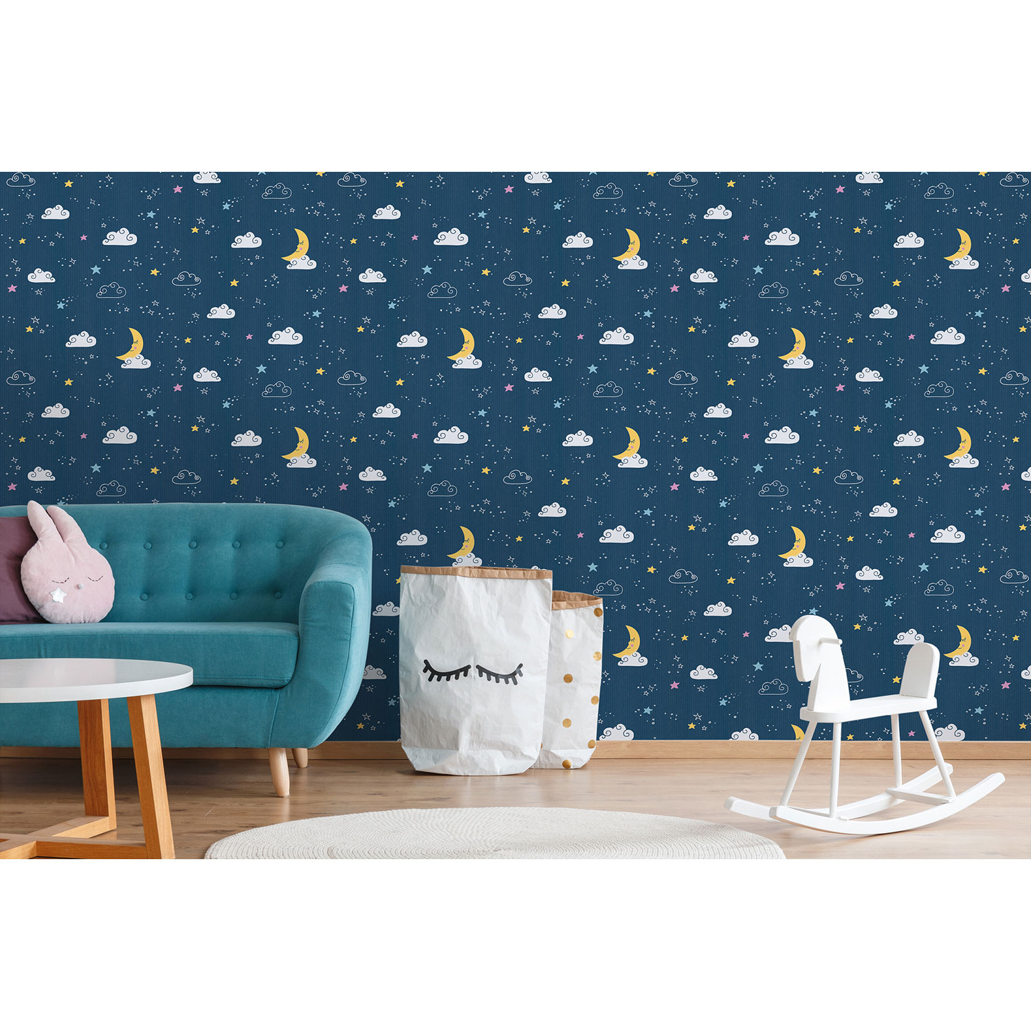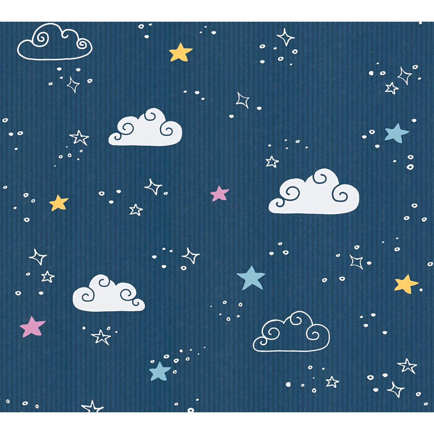 Die Sterne, Mond und Wolken lassen Kinderherzen höherschlagen. Somit präsentiert sich die Tapete niedlich und fantasievoll.