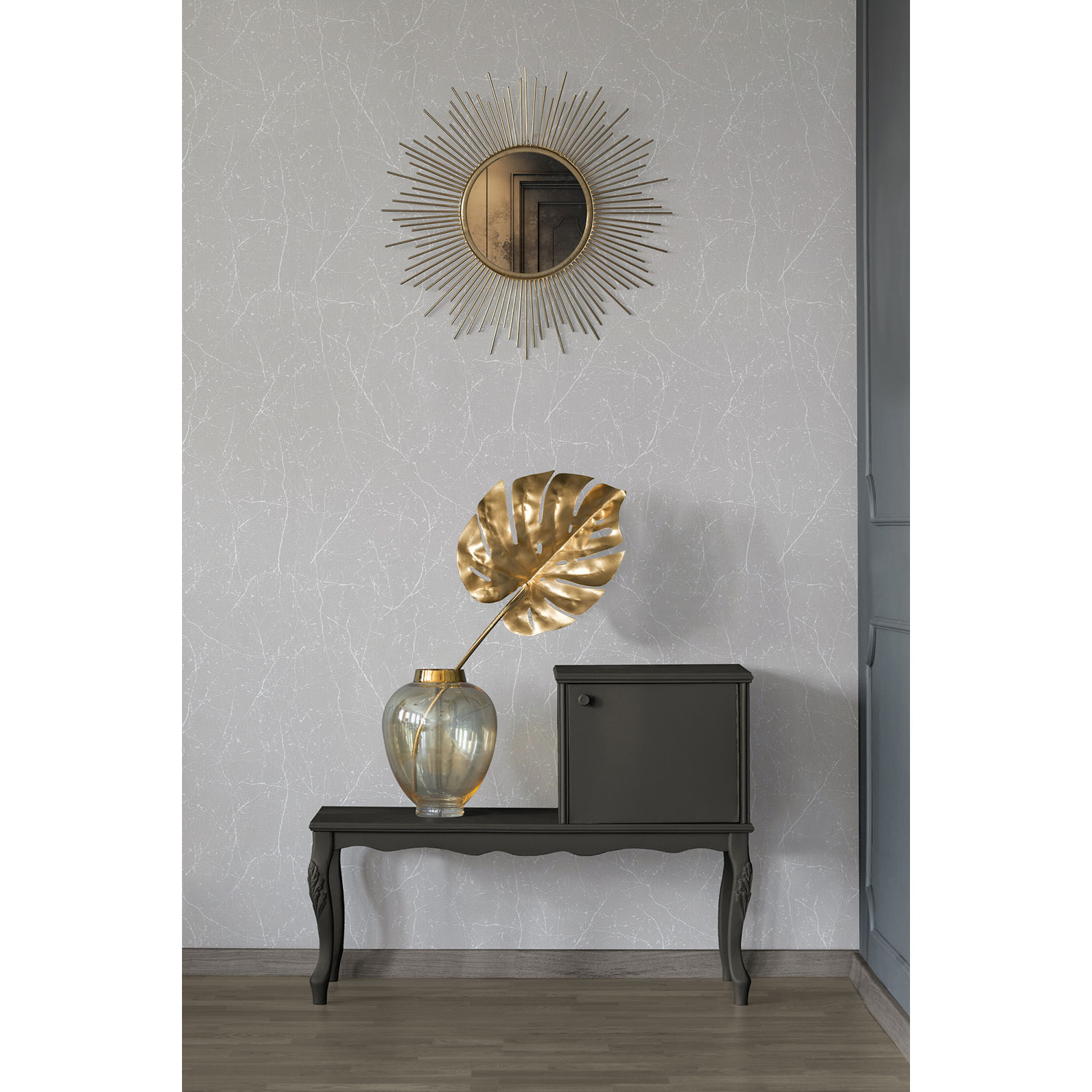Material: Vinyl Trägermaterial: Vlies Rapport: 64/32 cm versetzter Ansatz Maße (L x B): 10,05 m x 0,53 m Farbe: grau, weiß, silber hoch waschbeständig gut lichtbeständig restlos...