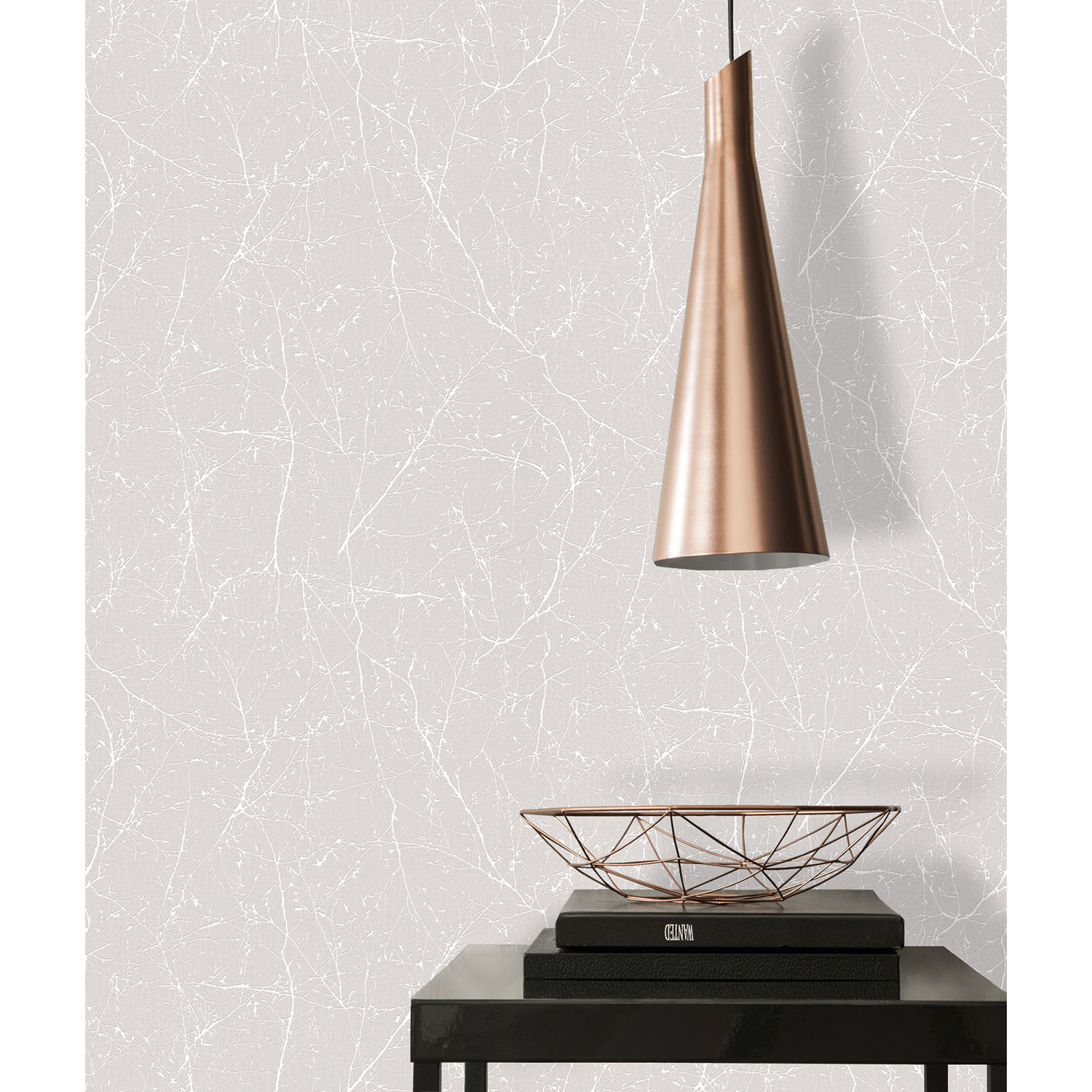 Die Tapete hat feine Textilstrukturen welche für eine wohnliche Atmosphäre sorgen. Das Astmuster sorgt dabei für ein besonders natürlichen Flair.