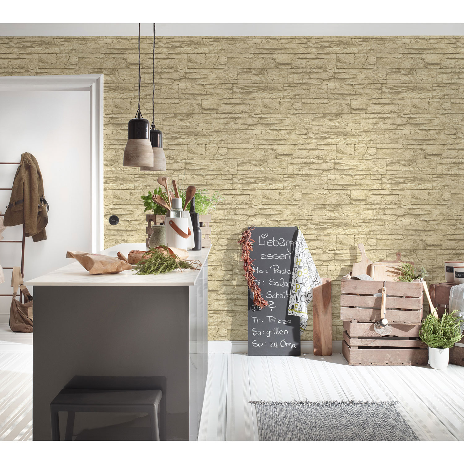 Diese Kollektion bietet die trendigsten Stein- und Holzoptik Tapeten. Sie verleihen Ihren Wohnräumen einen authentischen und realistischen Look.