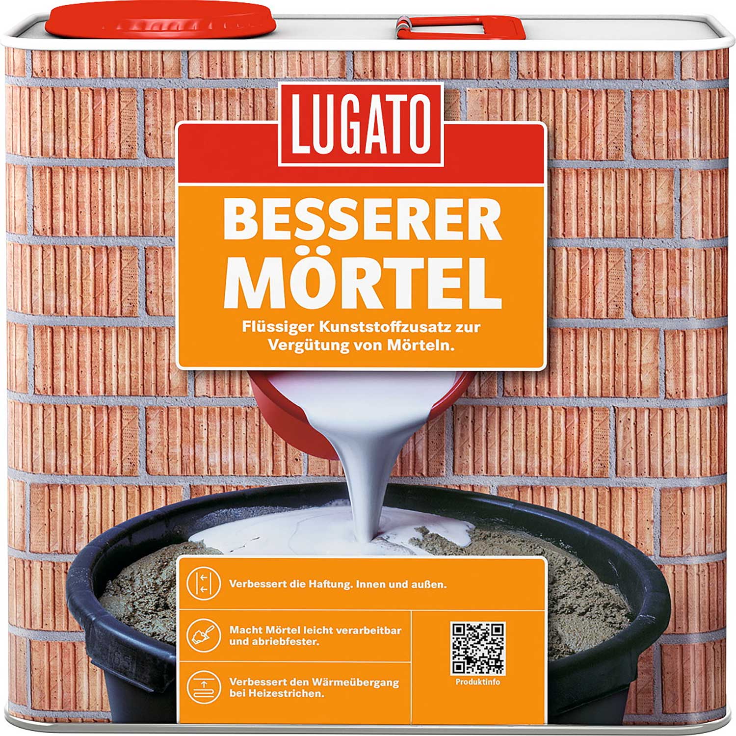 Besserer Mörtel von Lugato ist ein flüssiger Kunstoffzusatz welches die Qualität von Mörtel verbessert.