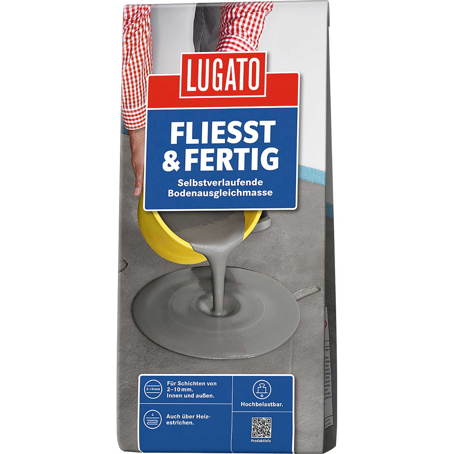 Fliesst & Fertig von Lugato ist eine selbstverlaufende Bodenausgleichmasse für Schichten von 2-10 mm im Innen- und Außenbereich.