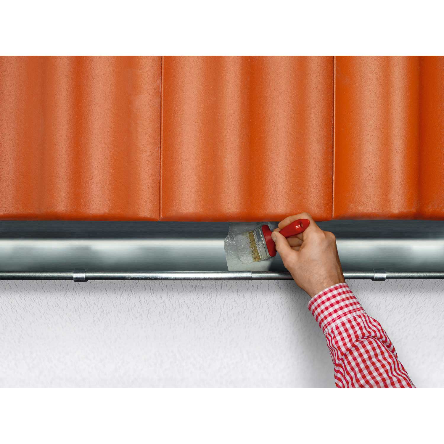 1. Abdichten einer Anschlussfuge auf dem Dach mit SOFORT DICHT! aus der Kartusche: SOFORT DICHT! mit Auspresspistole in die Fuge ausspritzen.