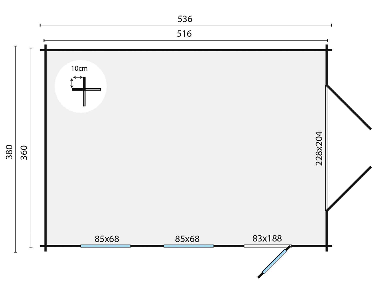 44 mm Wandstärke Maße: 536 x 380 cm Vollholztor / Vollholz-Doppeltür vollverglaste Einzeltür Grundfläche: 18,5 m² Umbauter Raum: 40,7 m³ Produktinformation Die praktische Garage...