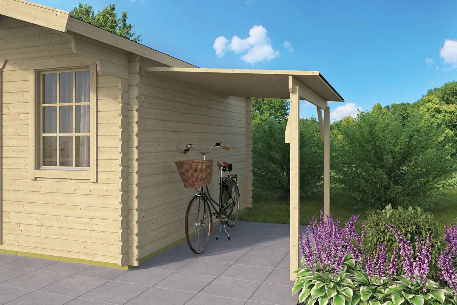 Praktisches Seitendach für Ihr Gartenhaus. Ideal zum Unterstellen von Rädern oder Abfallbehältern.