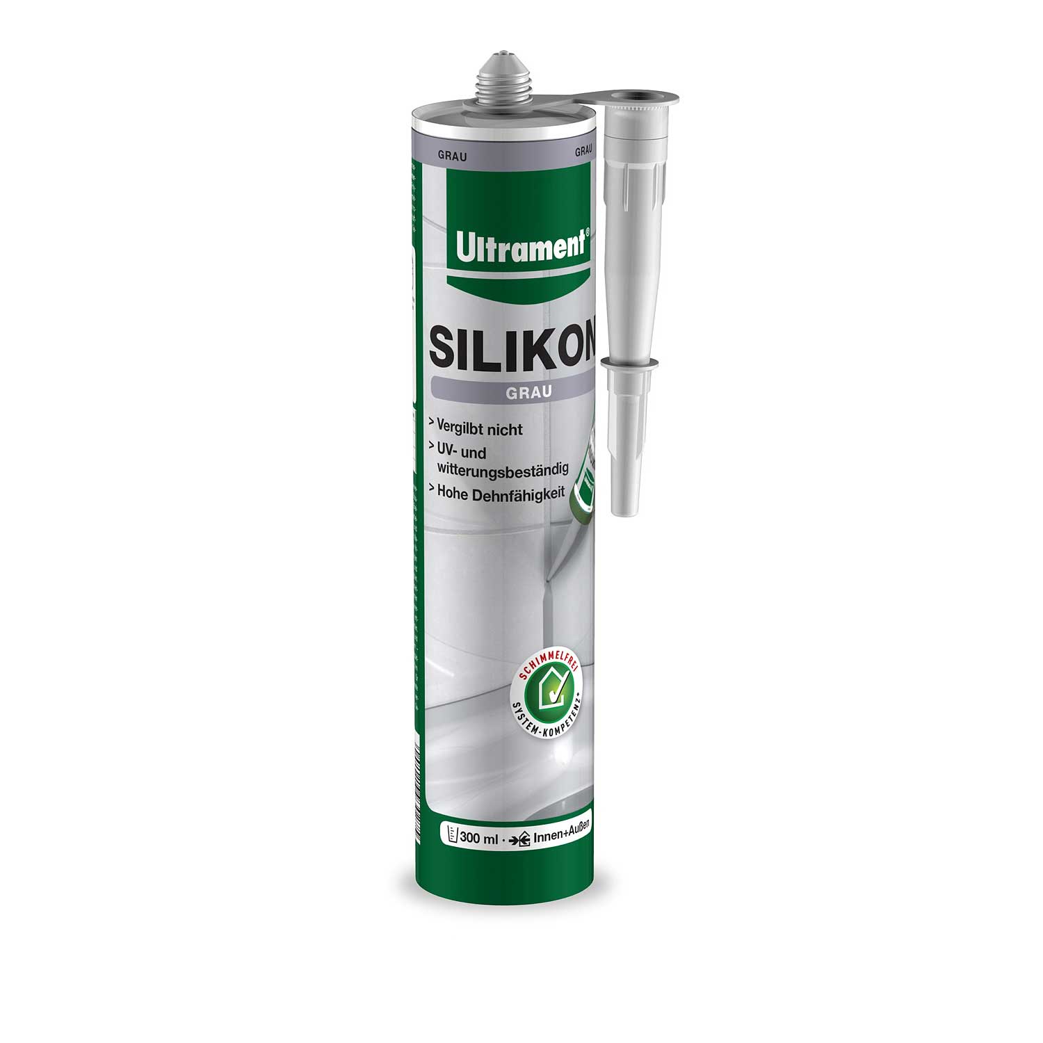 Ultrament Silikon ist eine schimmelresistente Silikon- Dichtungsmasse zum abdichten von Dehnungs- und Anschlussfugen im Innen- und Außenbereich.