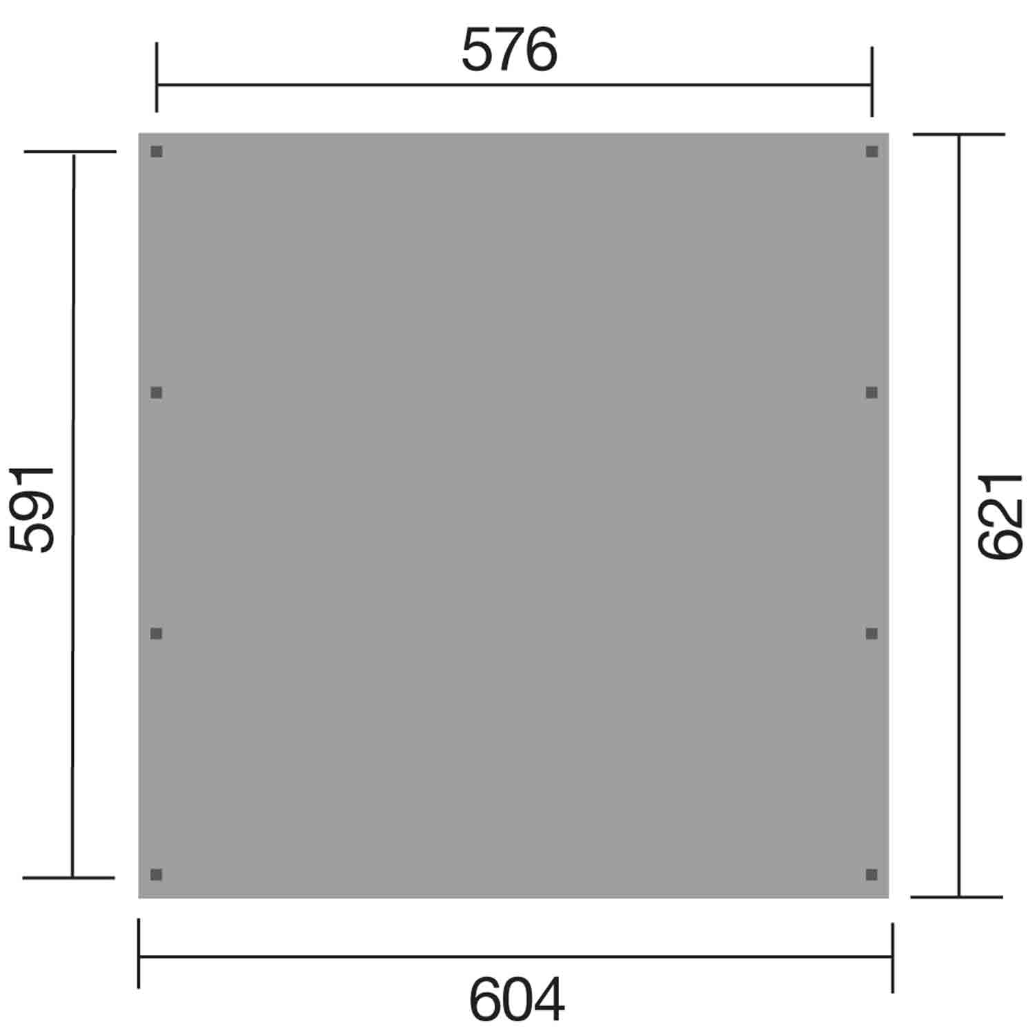 Mit einem Außenmaß von B 600 x T 614 x H 240 cm bietet es viel Platz. Die Nutzfläche vom Carport beträgt 34,04 m².
